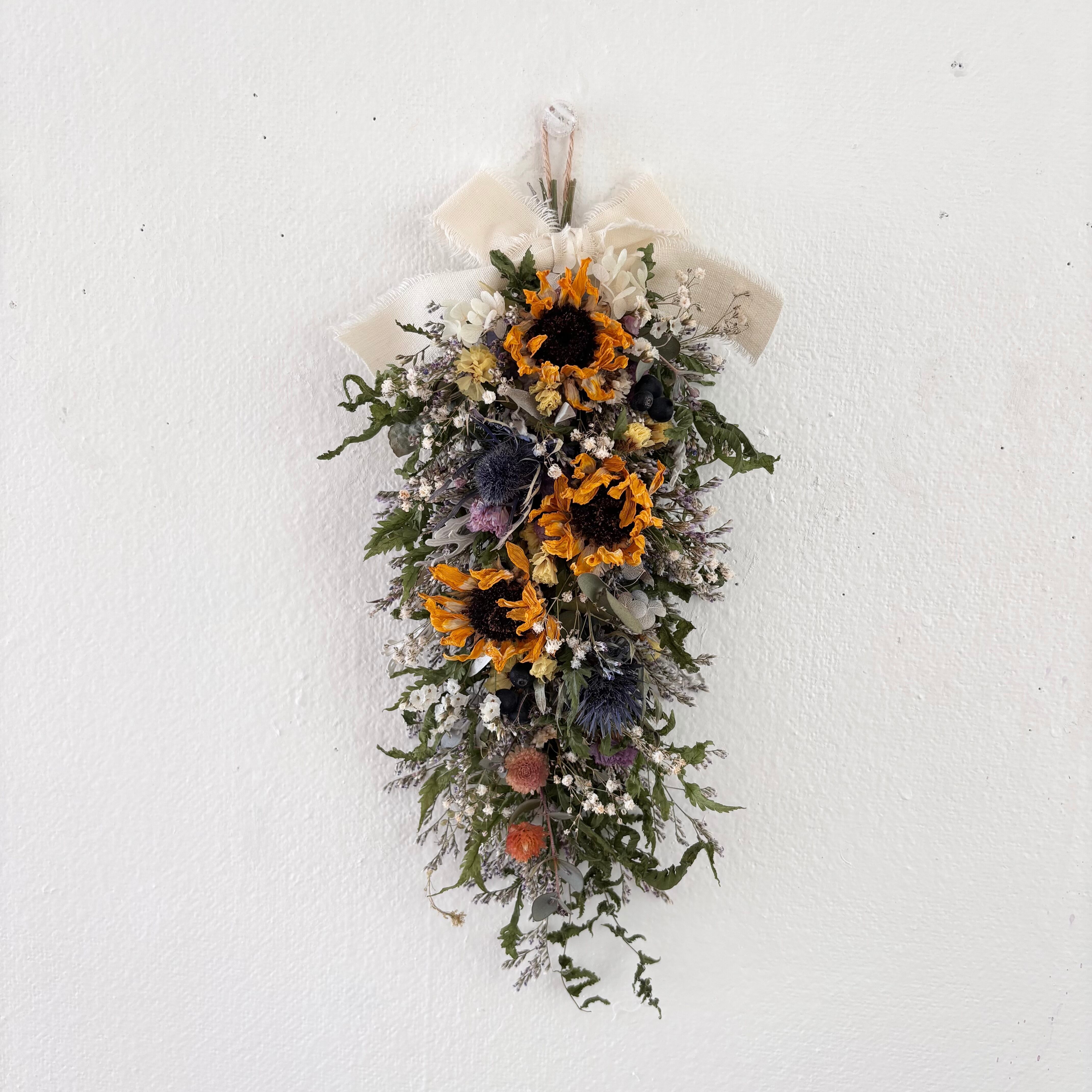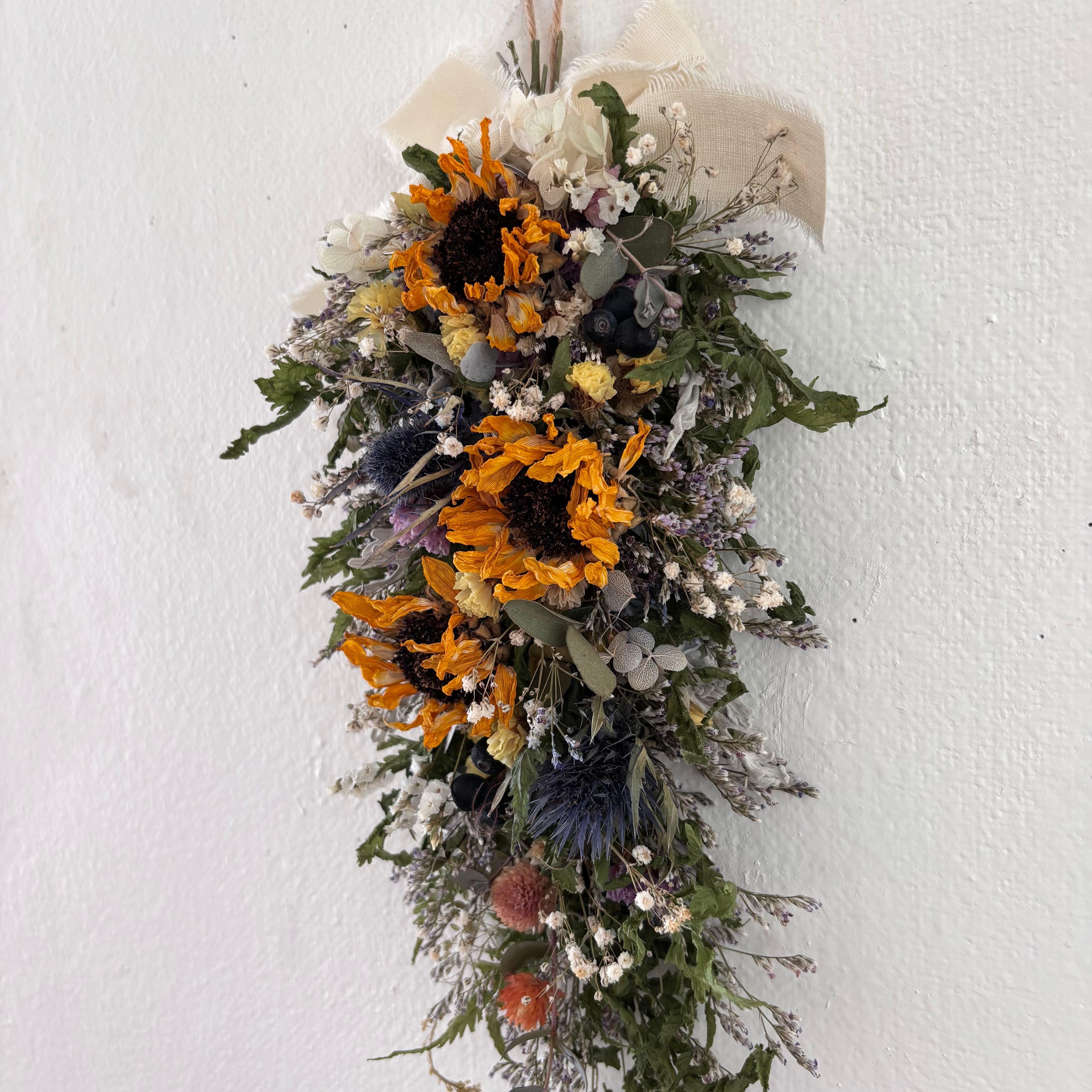ひまわりと小花のスワッグ ドライフラワー 誕生日プレゼント 引っ越し祝い 記念日 ギフト