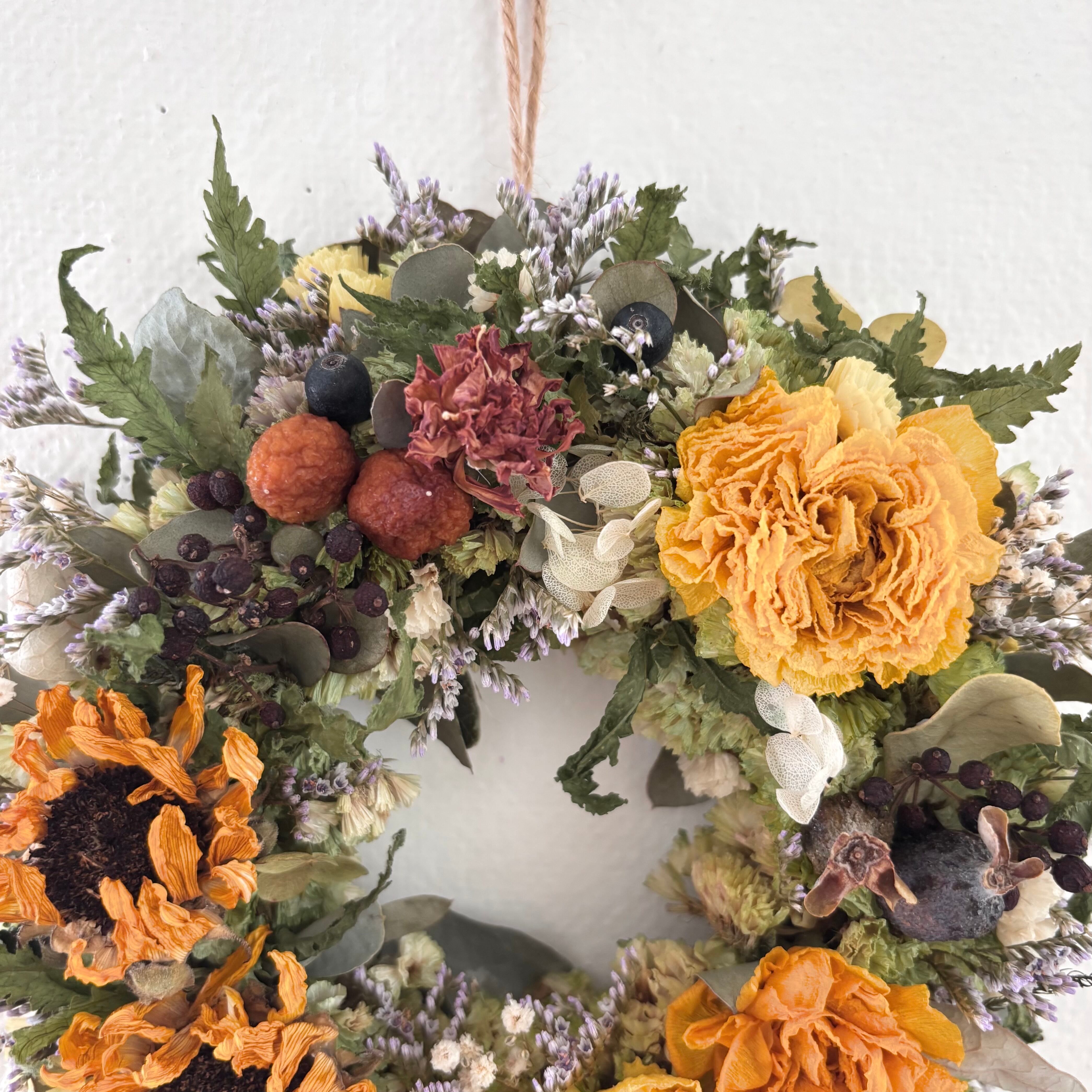 ひまわり ラナンキュラスのリース ドライフラワー 誕生日プレゼント 引っ越し祝い 記念日 ギフト