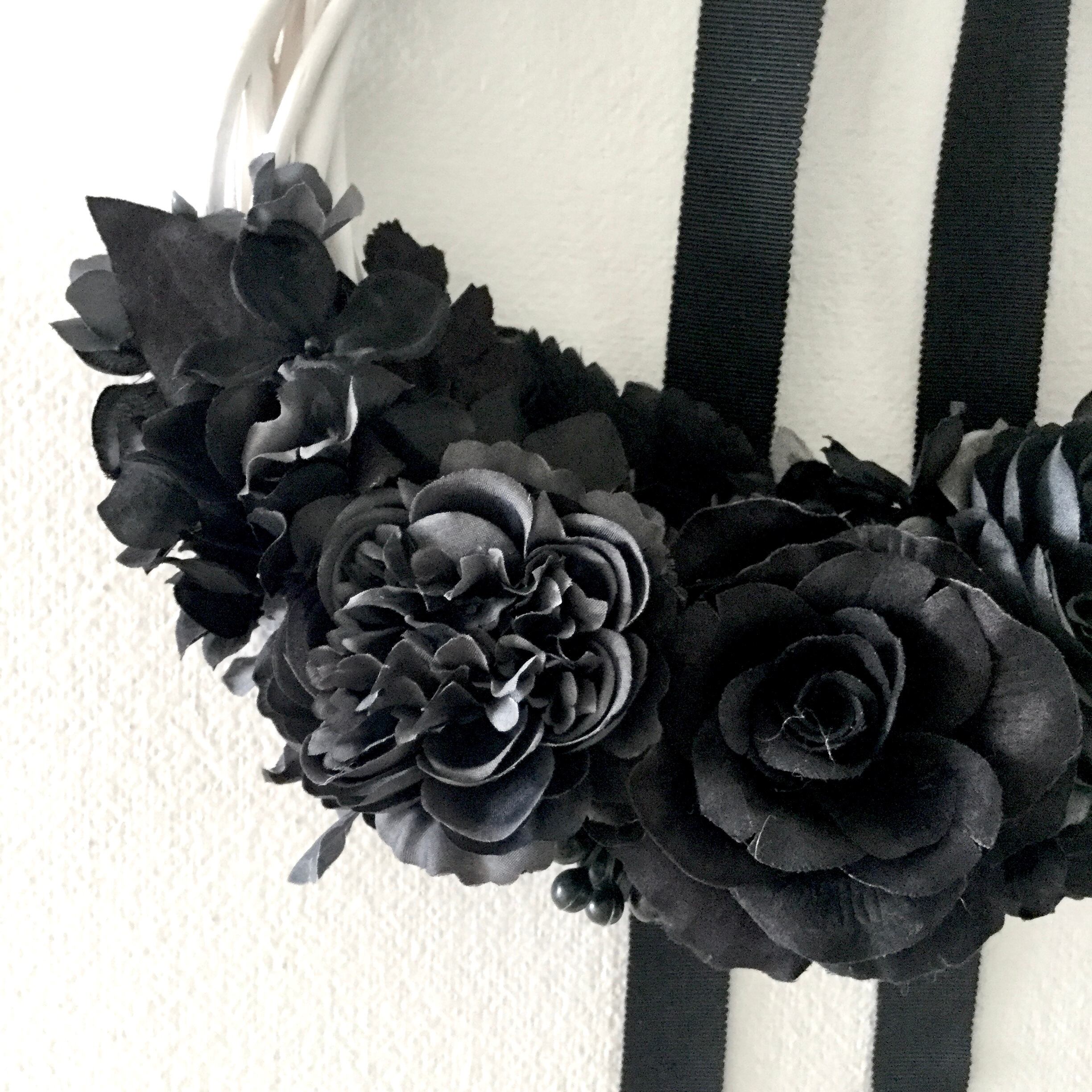 モノトーン フラワーリース ブラック アーティフィシャルフラワーリース 誕生日プレゼント 引っ越し祝い クリスマス