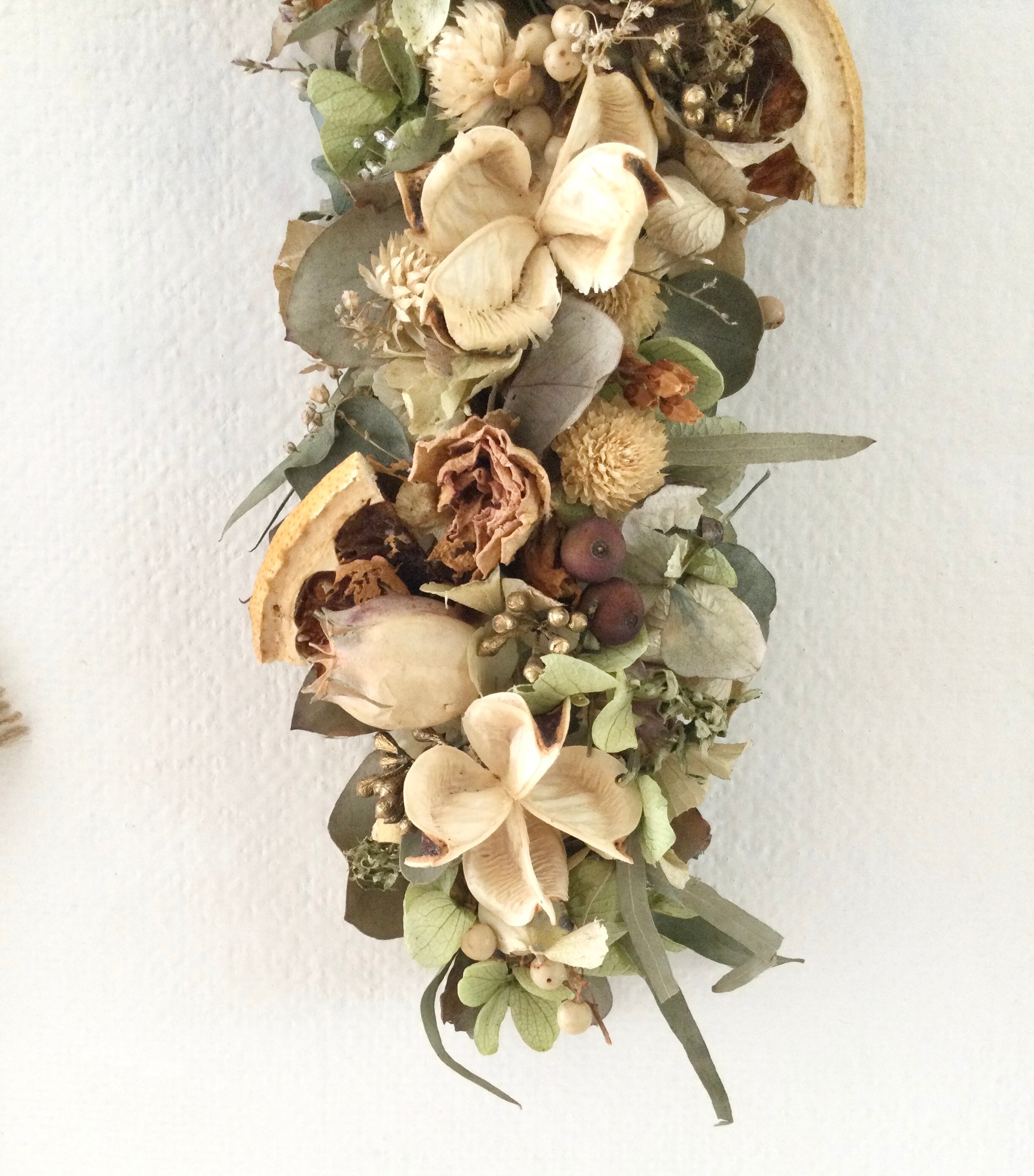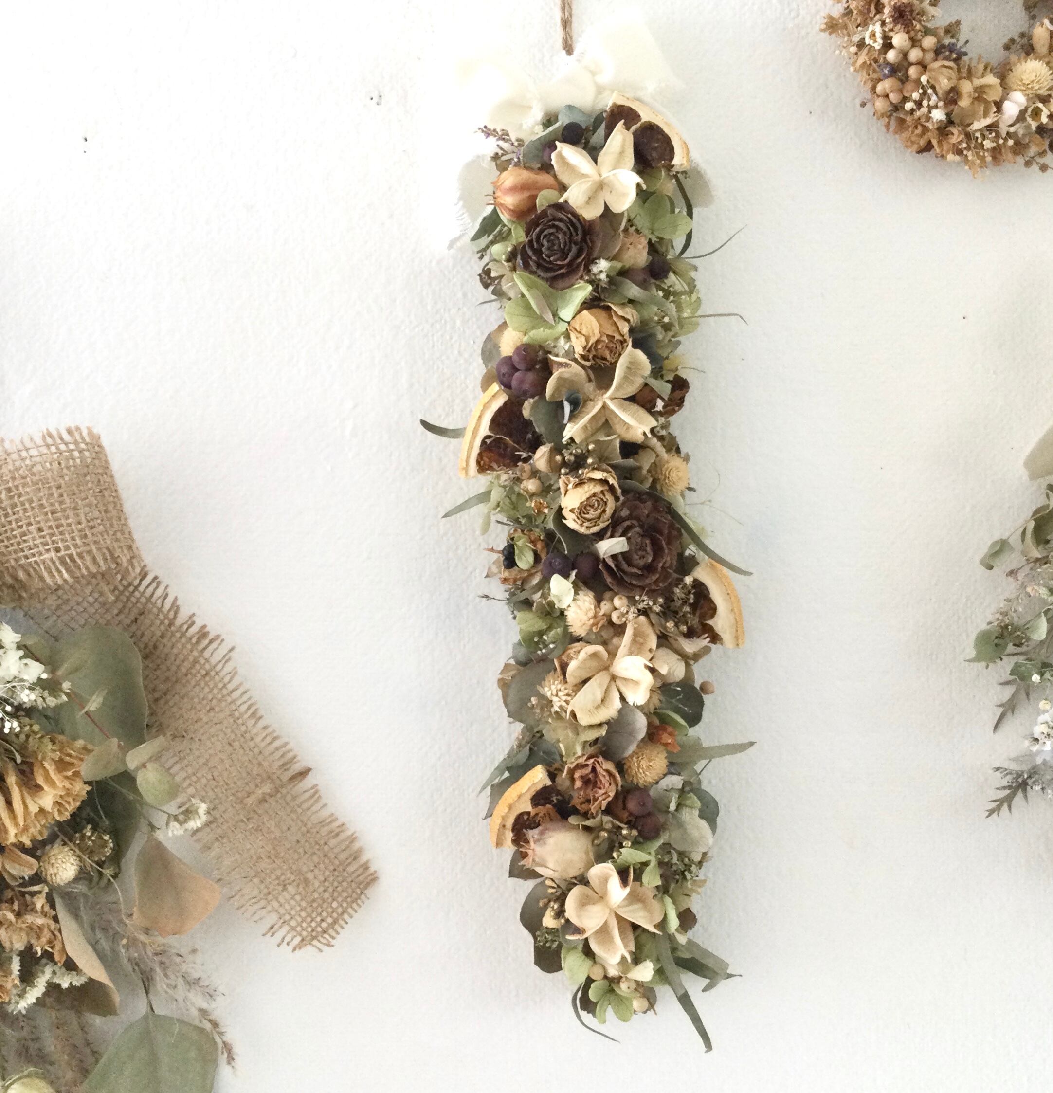 木の実とオレンジのガーランド スワッグ ドライフラワー 誕生日プレゼント 引っ越し祝い インテリア ハロウィン