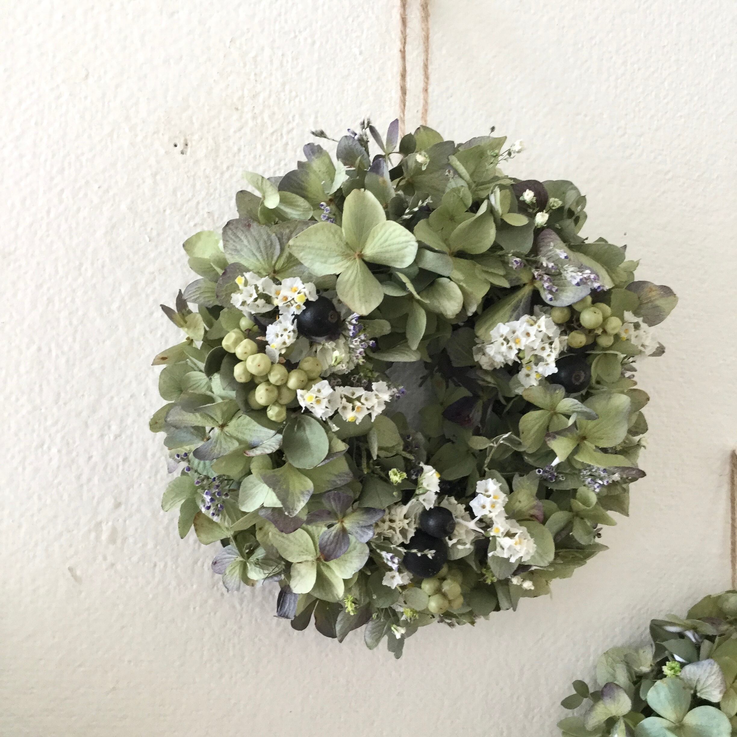 ご予約作品 紫陽花 ユーカリのリース 15-16cm 壁飾り ドライフラワーリース 誕生日プレゼント 引っ越し祝い 母の日 ギフト