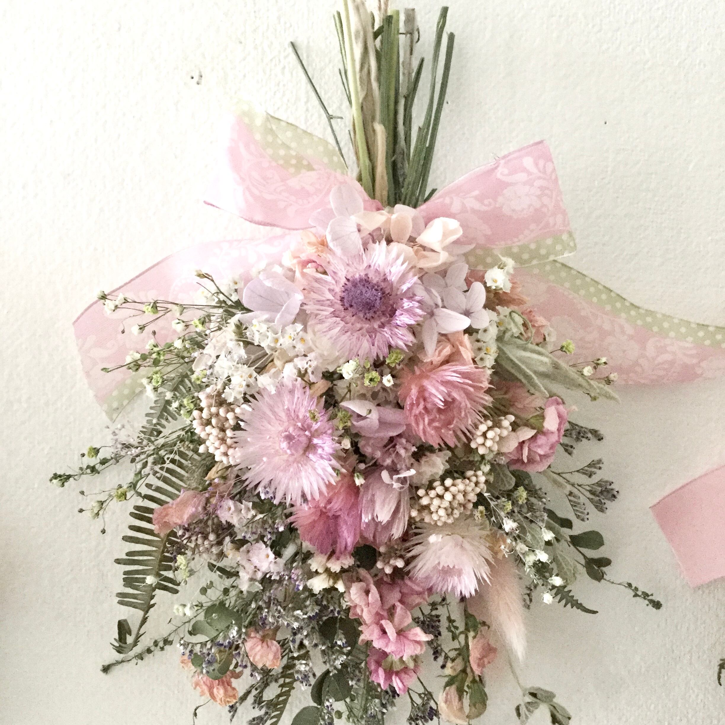 ご予約作品 シルバーデージー 小花のスワッグ ピンク 春スワッグ ドライフラワー 誕生日プレゼント 引っ越し祝い ギフト