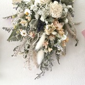 ナチュラルカラーのお花をまとめた優しいふんわりとした雰囲気ですので場所を選ばず飾っていただけます。