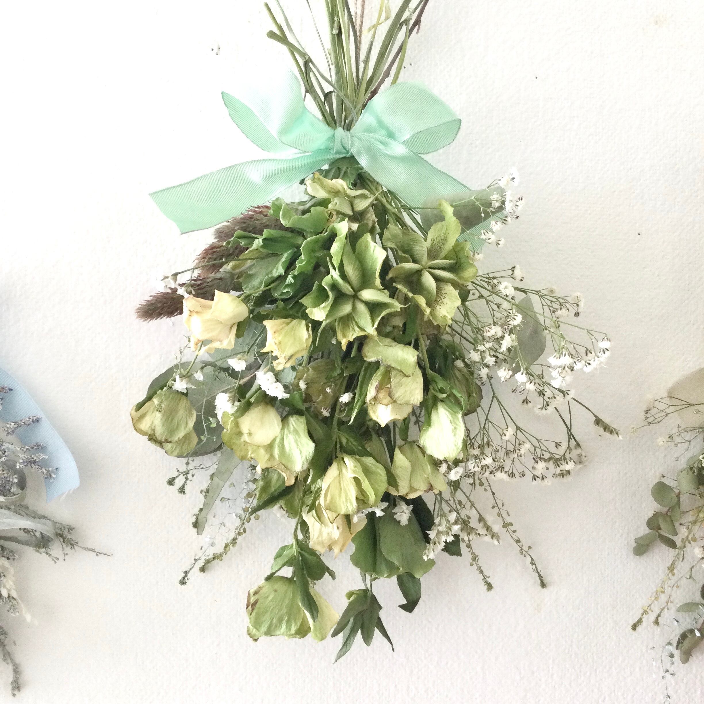 ・花材 ドライフラワー クリスマスローズ ユーカリ スターチス かすみ草 ナズナ ストロベリーキャンドル オーガンジーリボン等