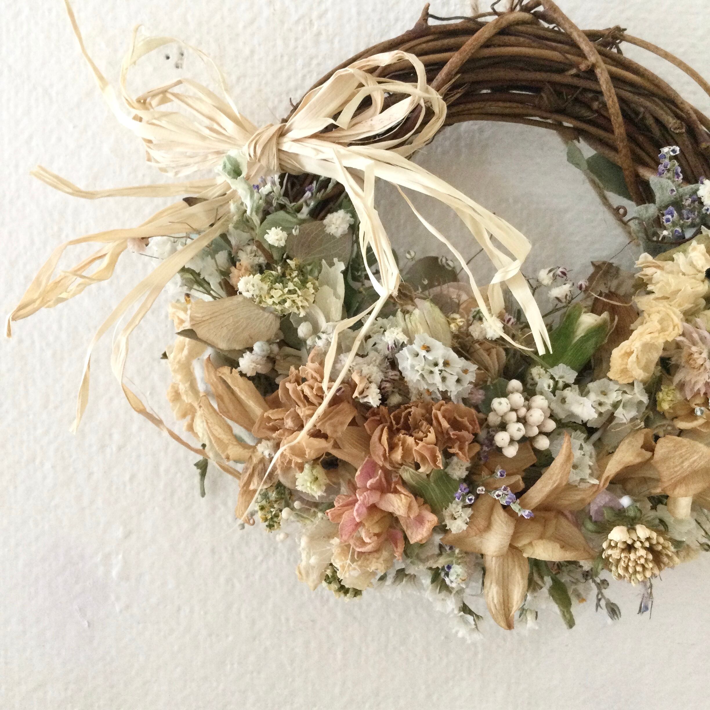 小花のミニリース アンティークカラー ドライフラワー 誕生日プレゼント 引っ越し祝い ギフト