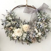 ソラローズ ユーカリ小花をたっぷりのグレイッシュなシャビーリースです。