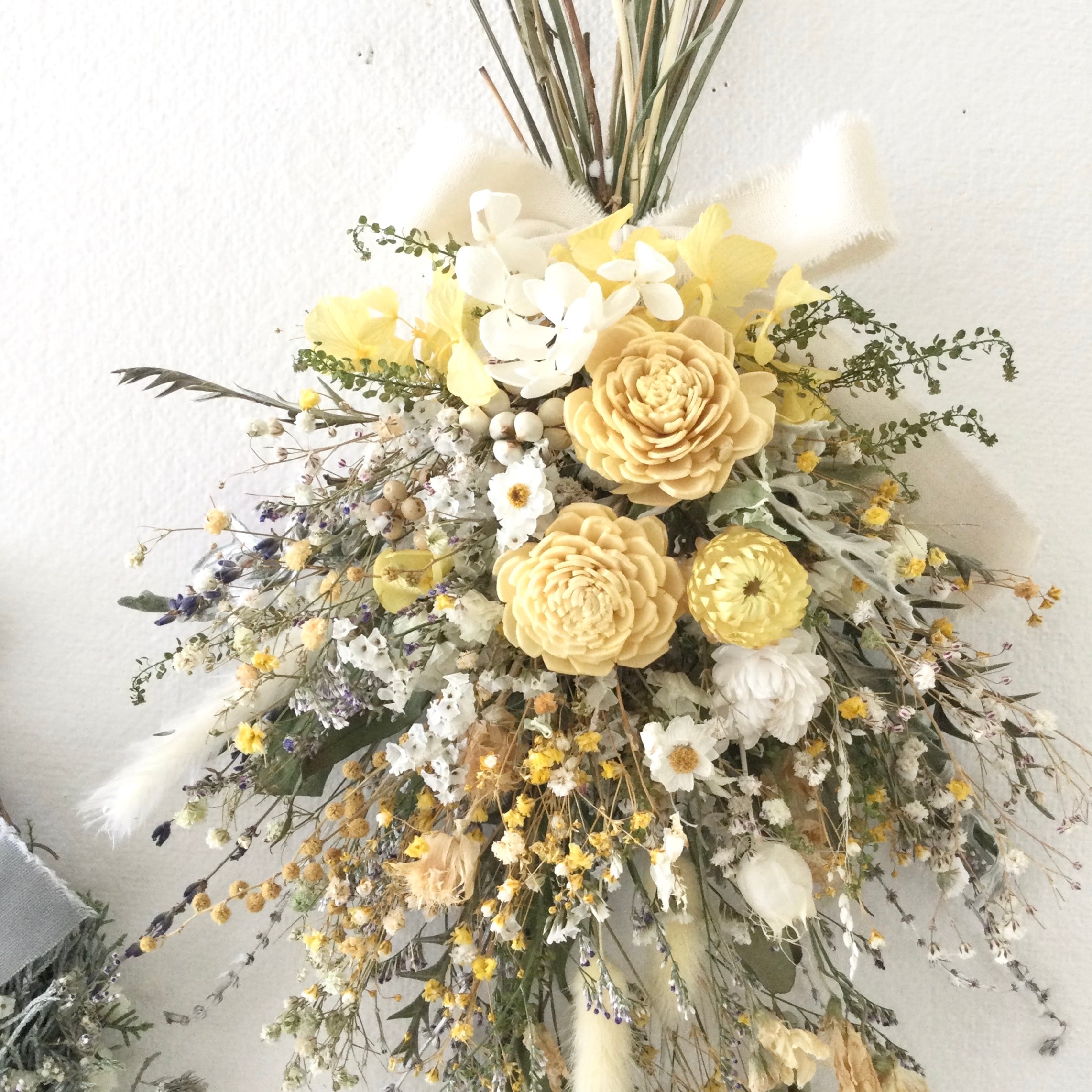 ソラローズと小花のスワッグ イエロー ドライフラワー 誕生日プレゼント 引っ越し祝い ギフト