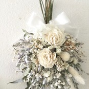 ナチュラルホワイトのお花をまとめた優しいふんわりとした雰囲気ですので場所を選ばず飾っていただけます。