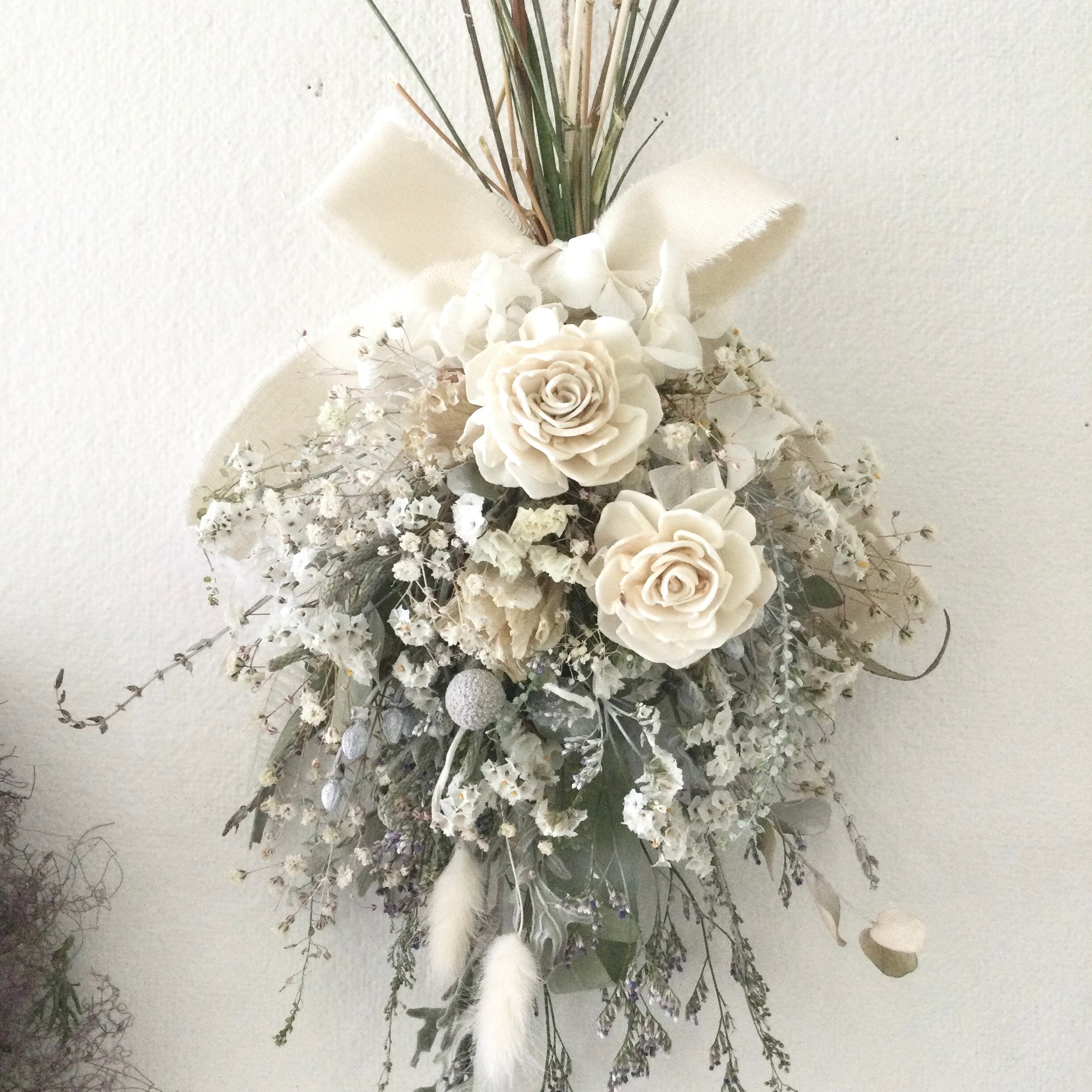ソラダリアと 小花のスワッグ ナチュラルホワイト ドライフラワー 誕生日プレゼント 引っ越し祝い ギフト