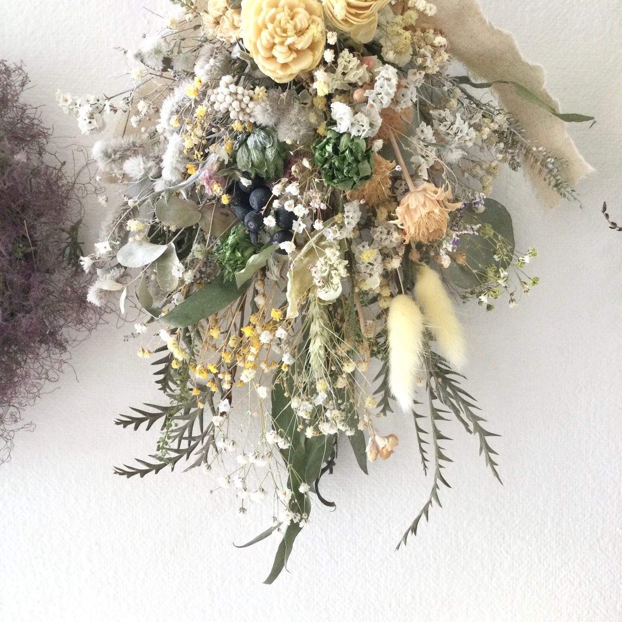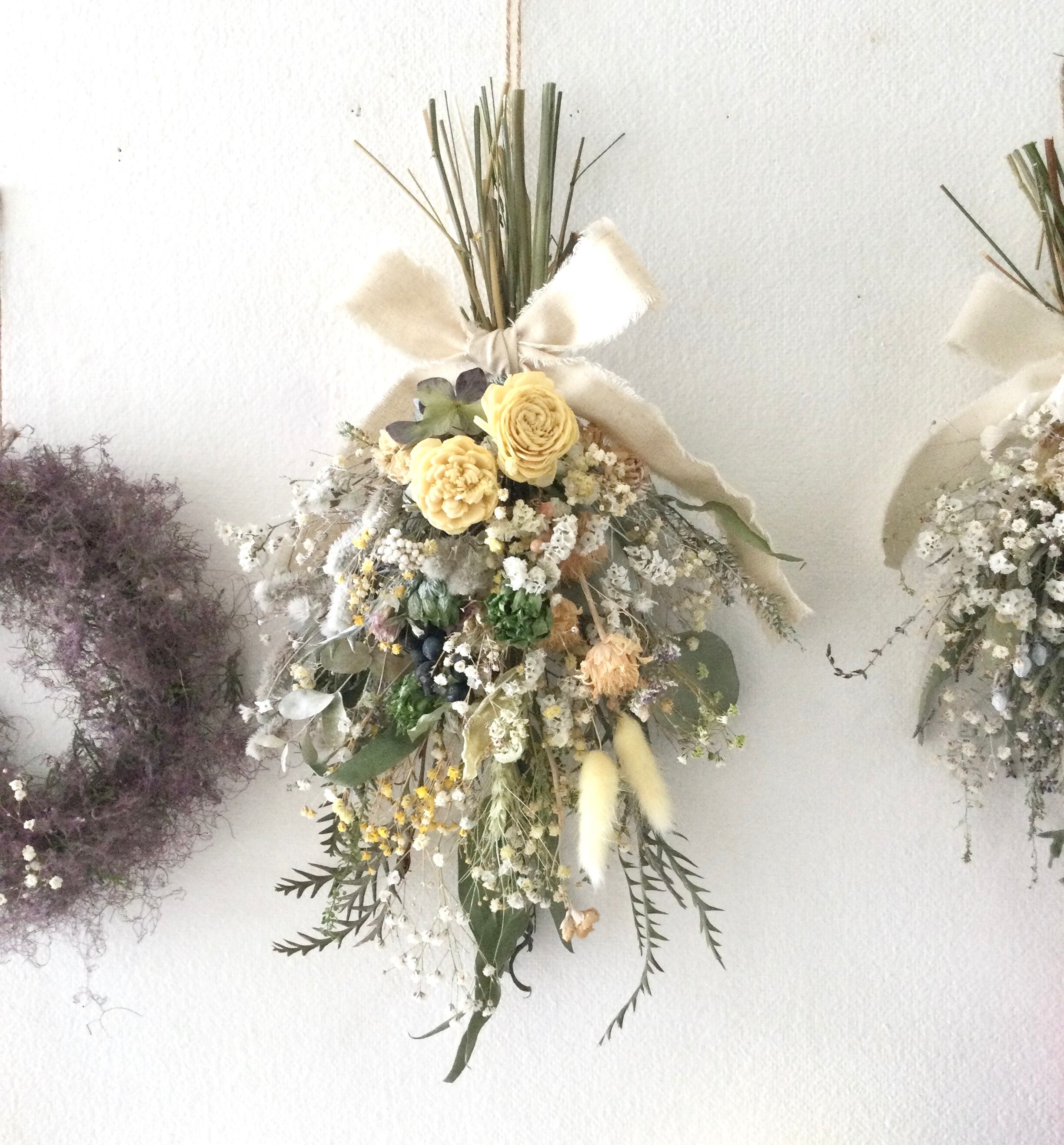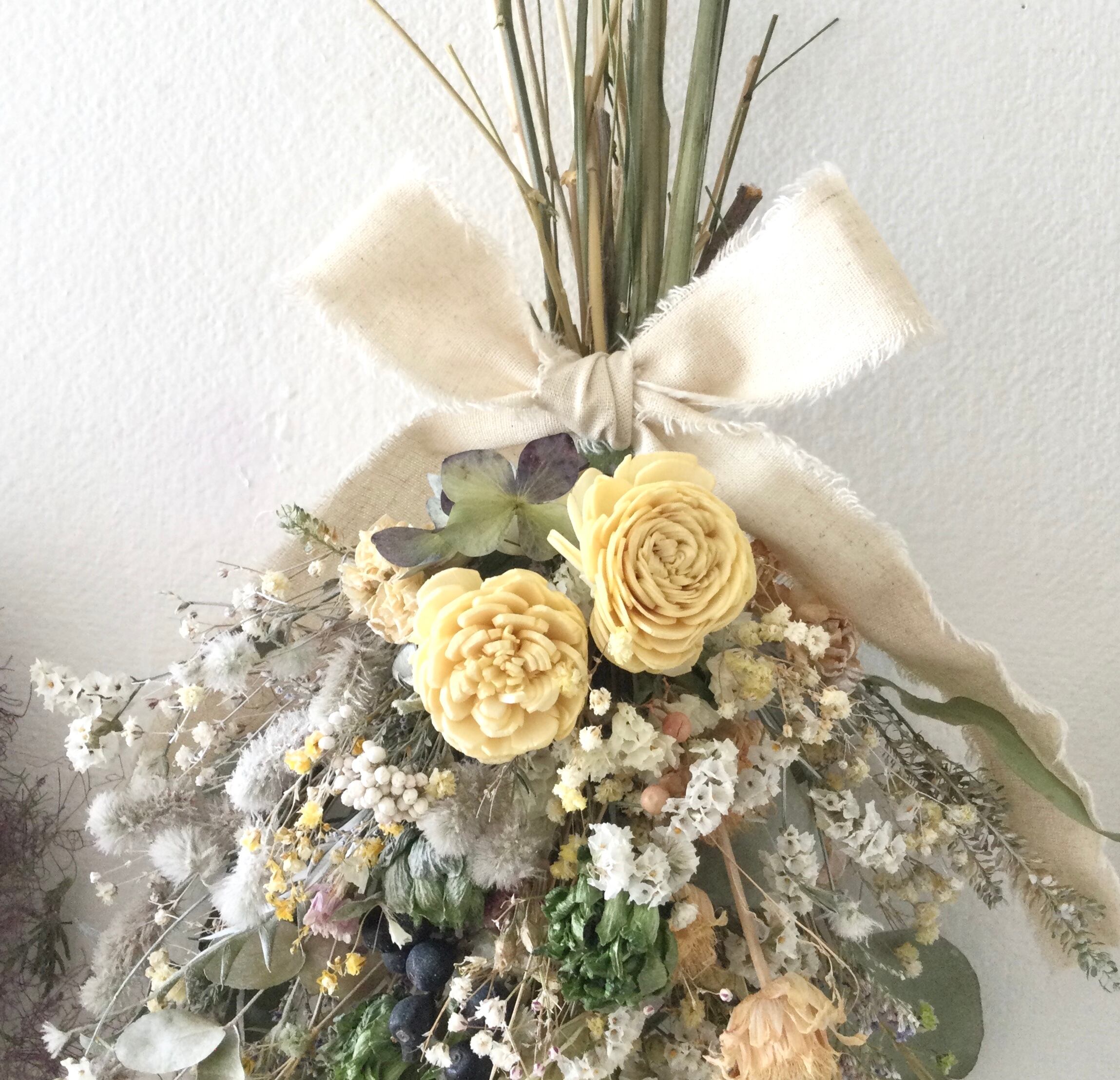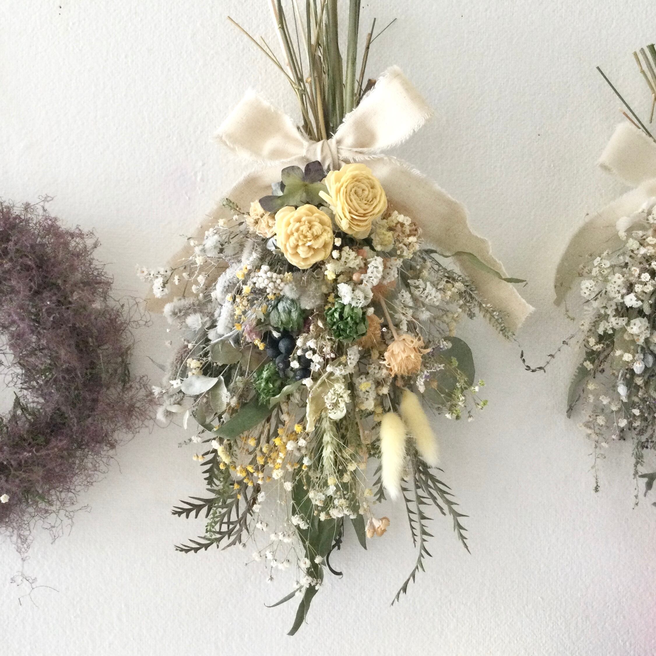 ソラローズと小花のスワッグ イエロー ドライフラワー 誕生日プレゼント 引っ越し祝い ギフト