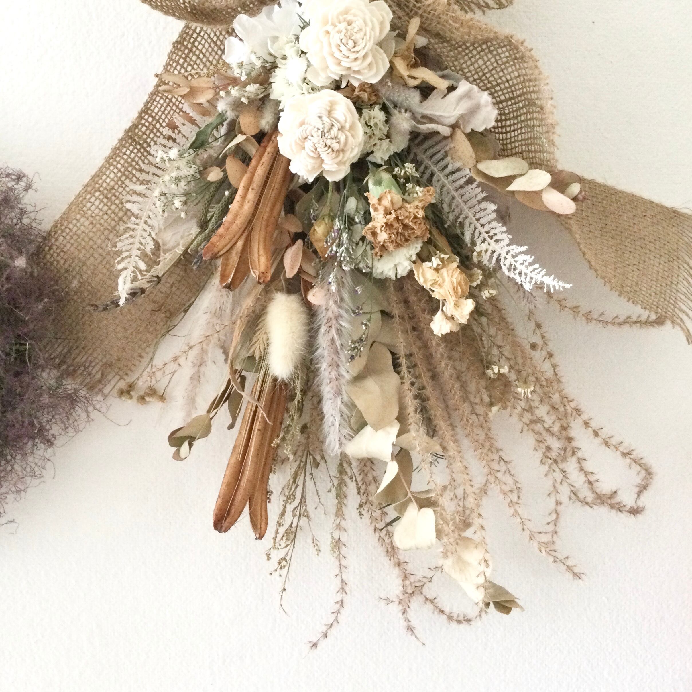 ソラローズ ユーカリ ふわふわススキ チガヤ ラグラス小花のスワッグです。