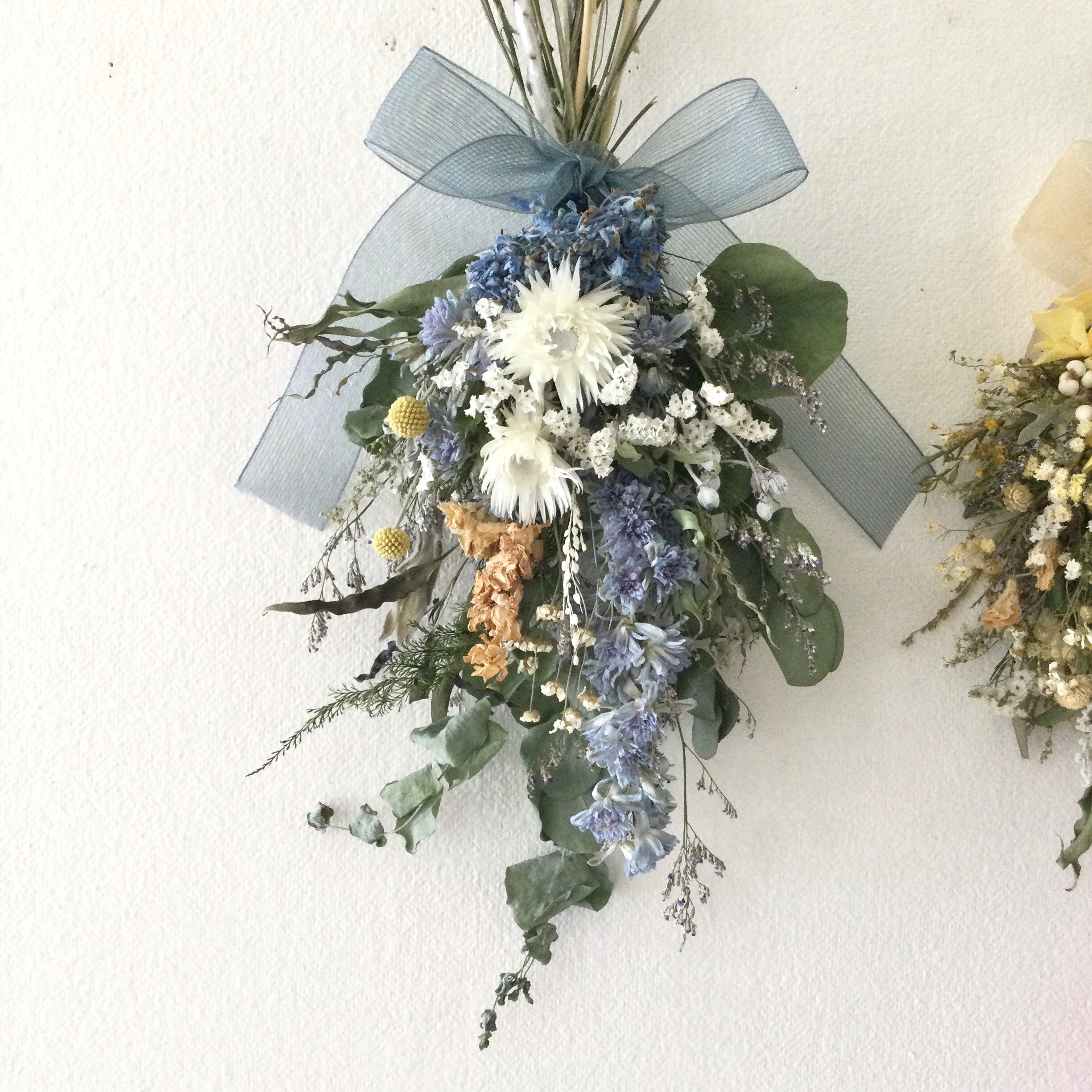 シルバーデージー ブルーのお花 初夏の涼しげナチュラルスワッグ ドライフラワー 誕生日プレゼント 引っ越し祝い ギフト