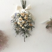 ローズと小花のスワッグ ナチュラル〜アンティークカラー ドライフラワー 誕生日プレゼント 引っ越し祝い ギフト