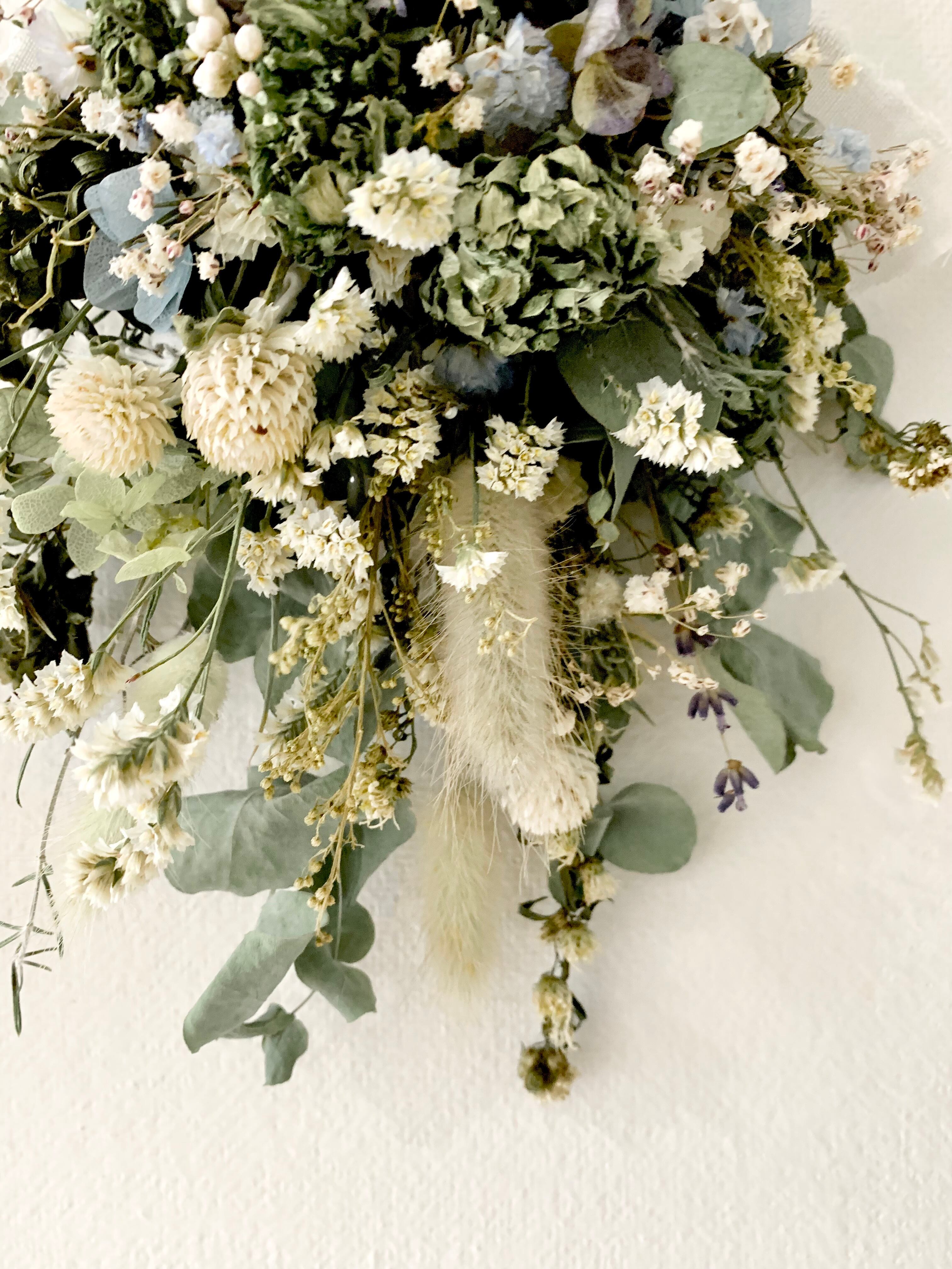 ・花材 ドライフラワー ユーカリ ローズ スターチス HBスターチス かすみ草 ブルーファンタジア 紫陽花 ナズナ 千日紅 ダスティミラー デルフィニウム ラグラス ラベンダー 孔雀草 リボン等