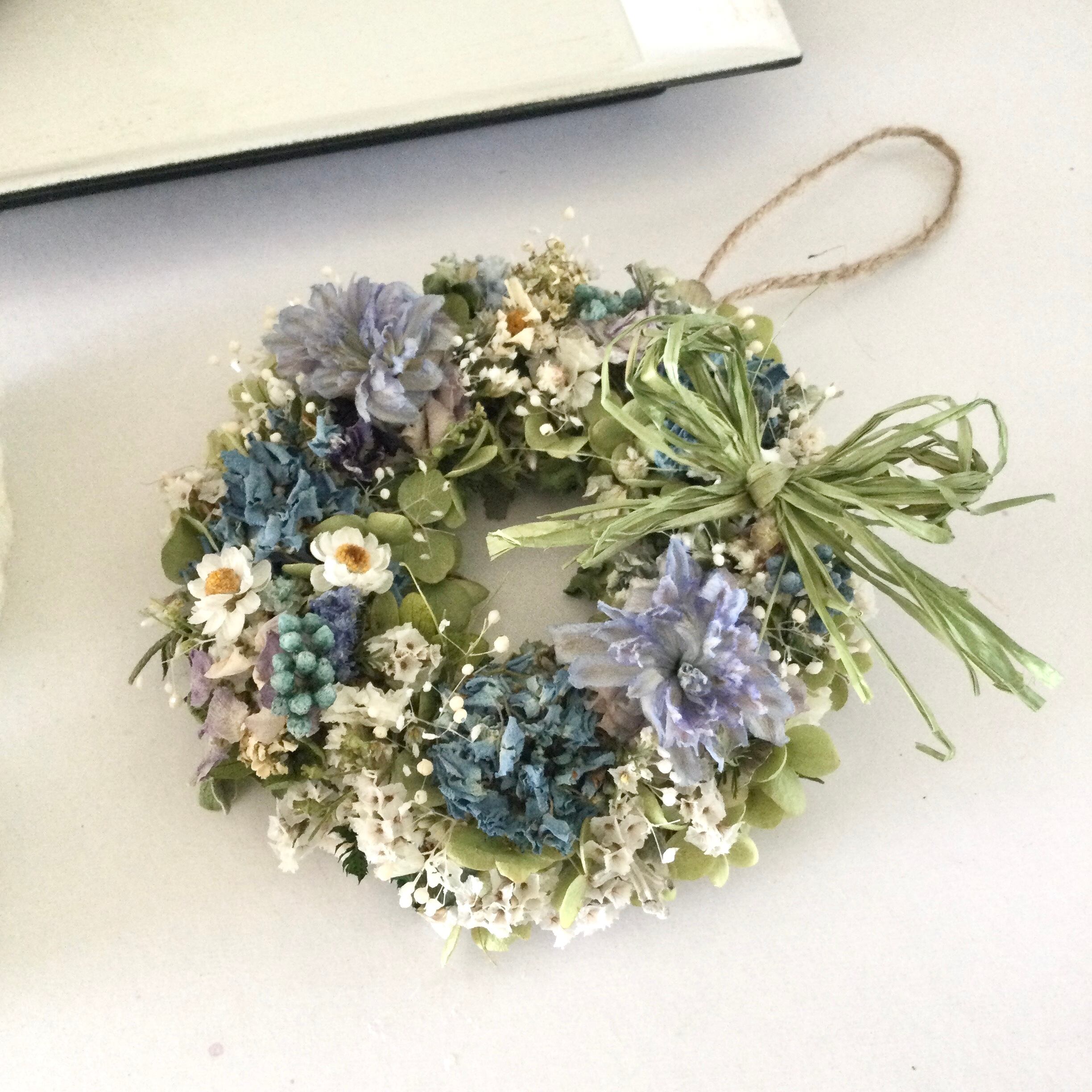 紫陽花と小花のミニリース ドライフラワー 誕生日プレゼント 引っ越し祝い 夏 ギフト