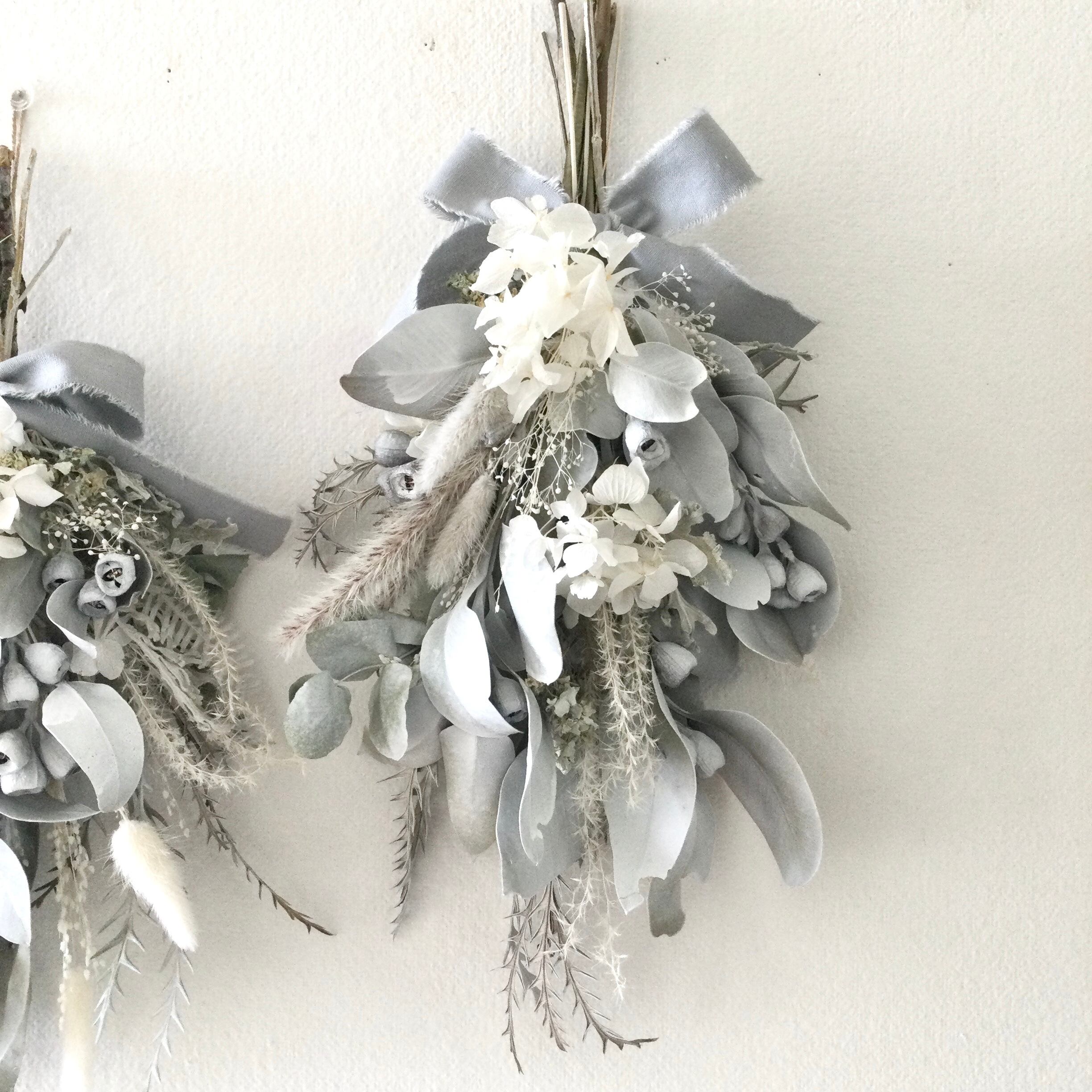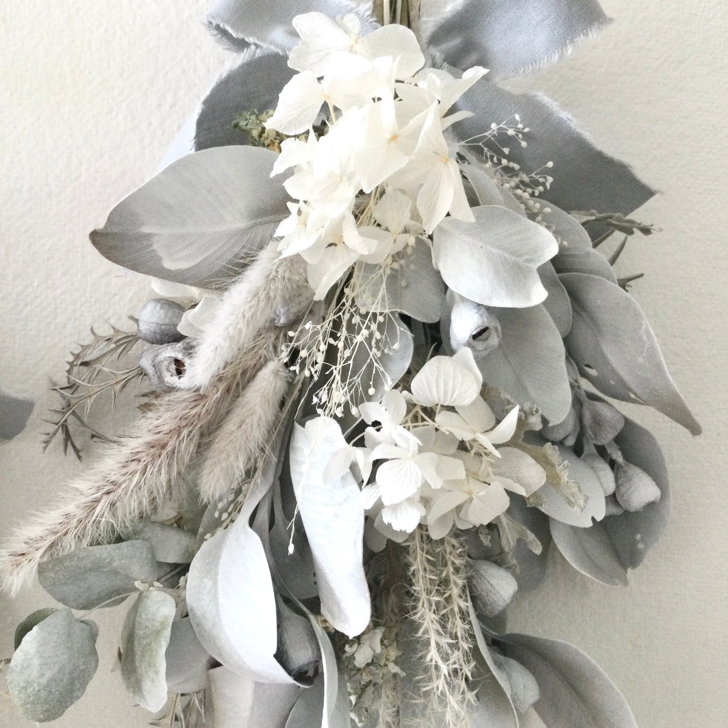 ユーカリ テトラゴナとホワイト紫陽花のシャビーなスワッグです。