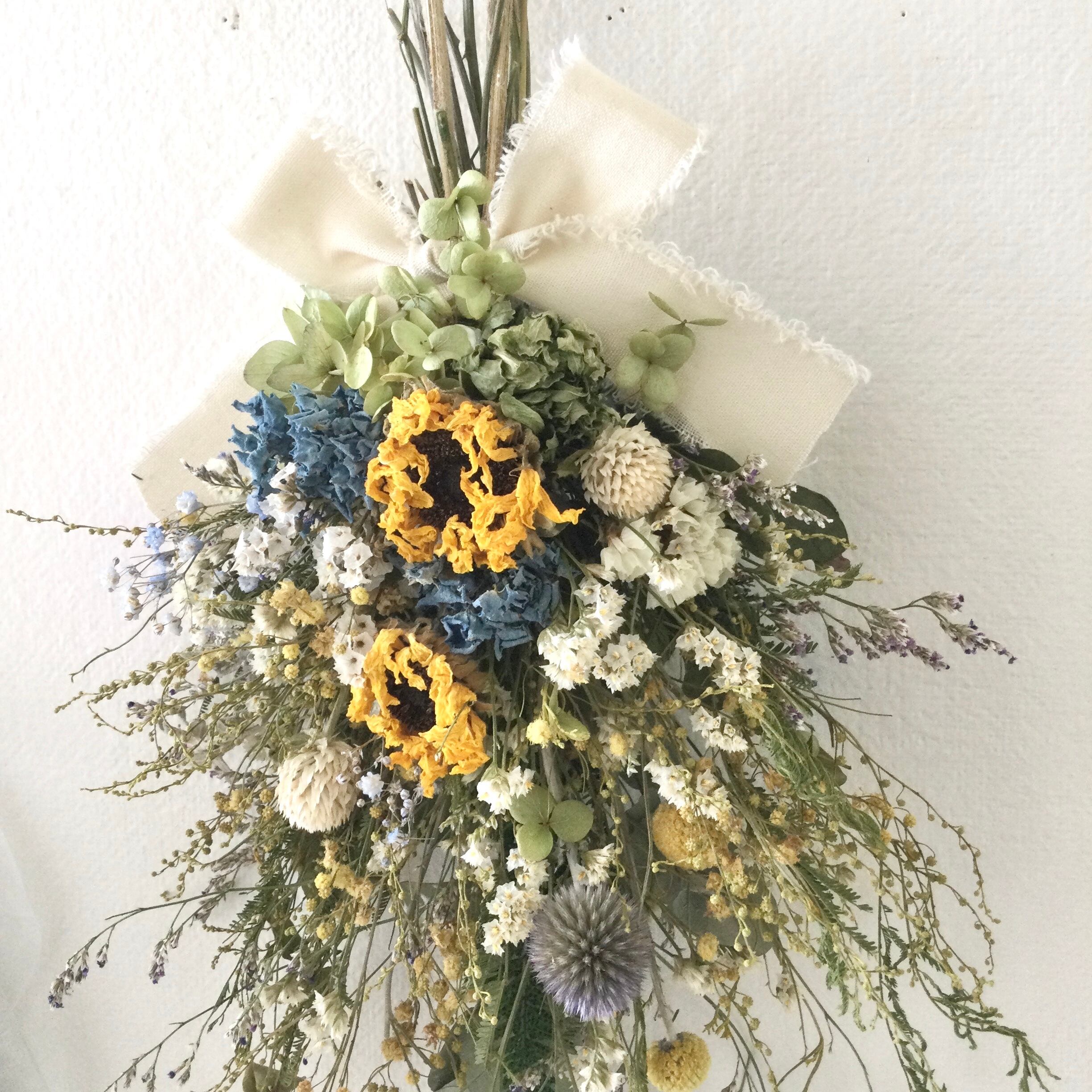 ひまわりとミモザ ナチュラルスワッグ ドライフラワー 誕生日プレゼント 引っ越し祝い ギフト