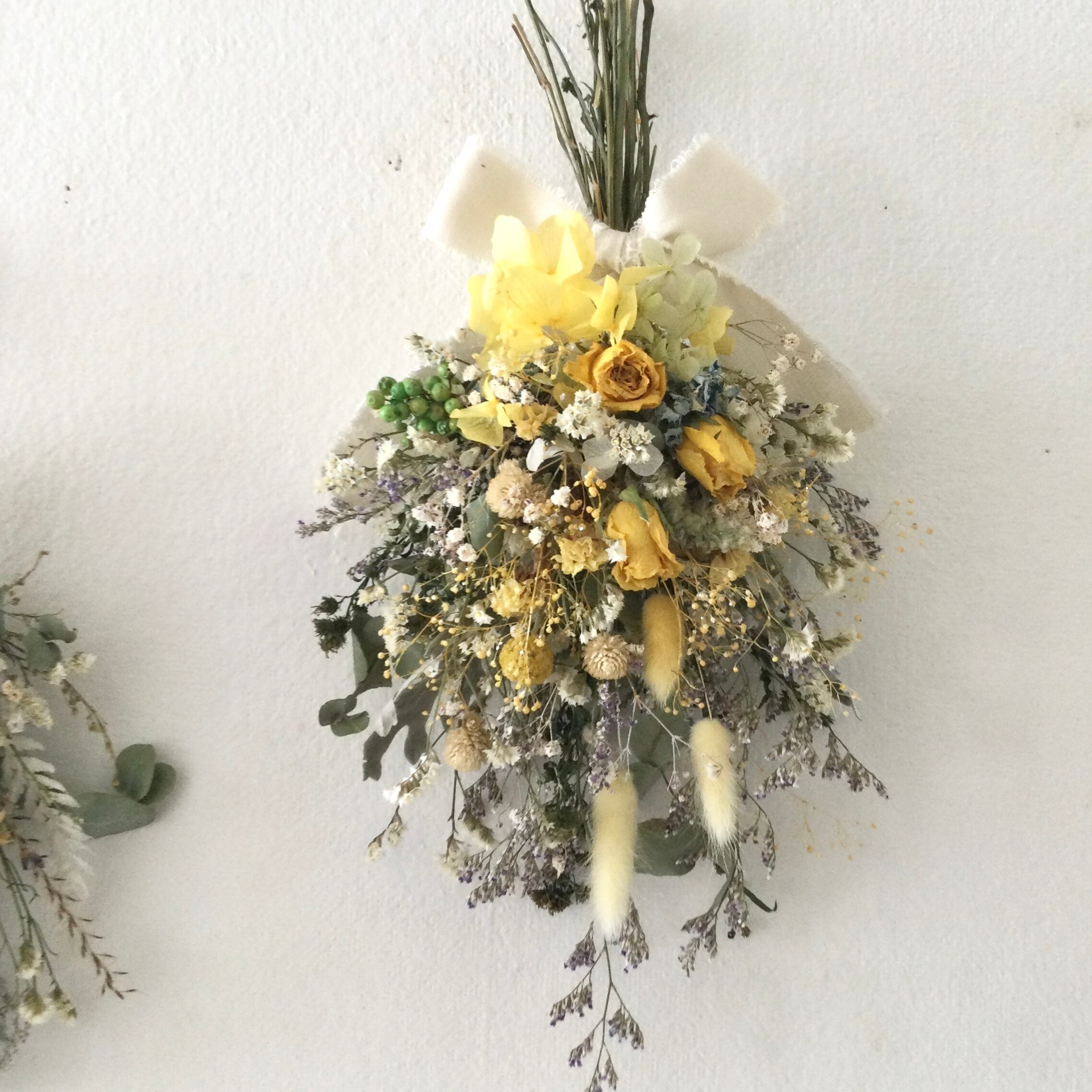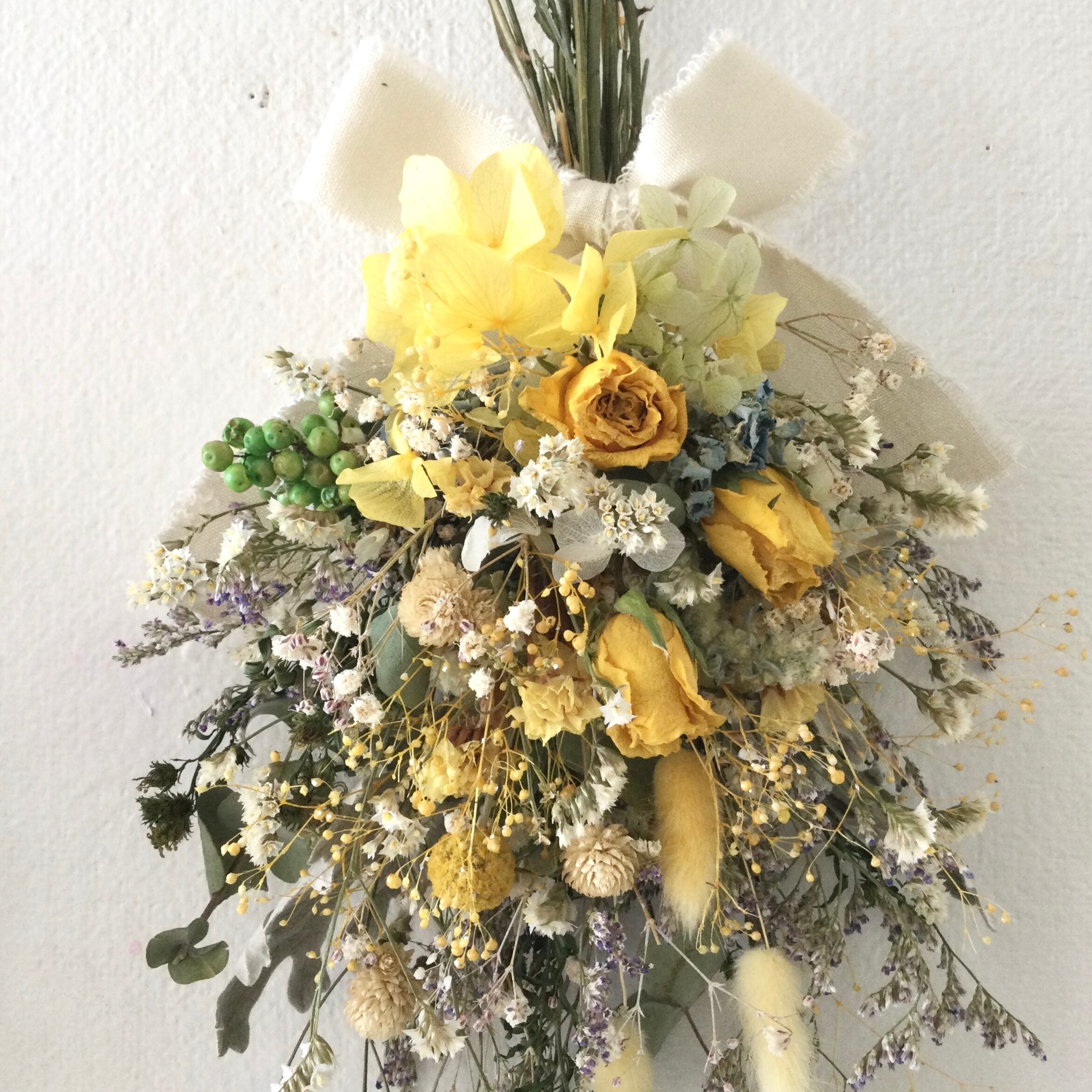 ローズと小花のスワッグ イエロー ドライフラワー 誕生日プレゼント 引っ越し祝い ギフト 夏ギフト