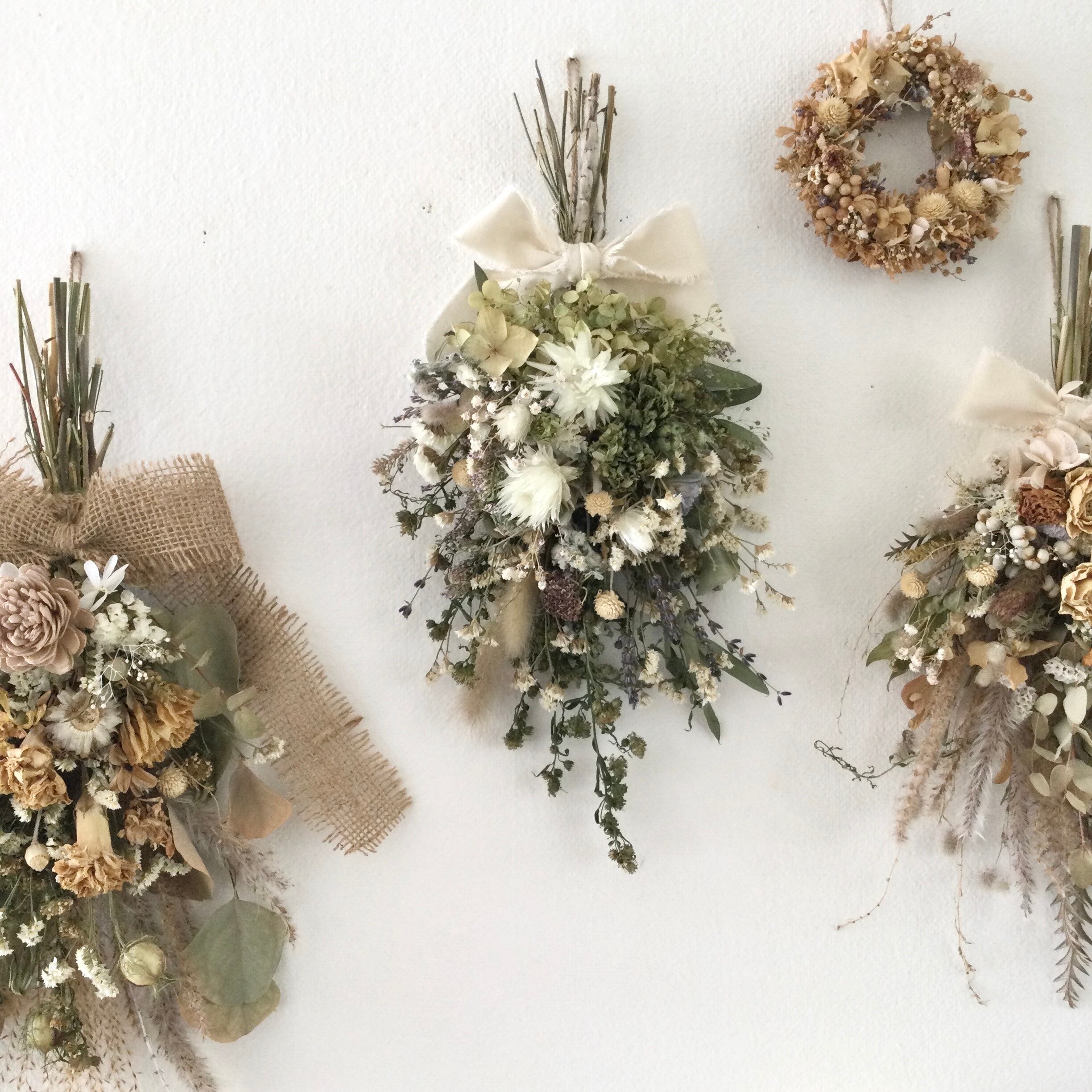 シルバーデージーと小花のスワッグ ドライフラワー 誕生日プレゼント 引っ越し祝い ギフト 夏ギフト