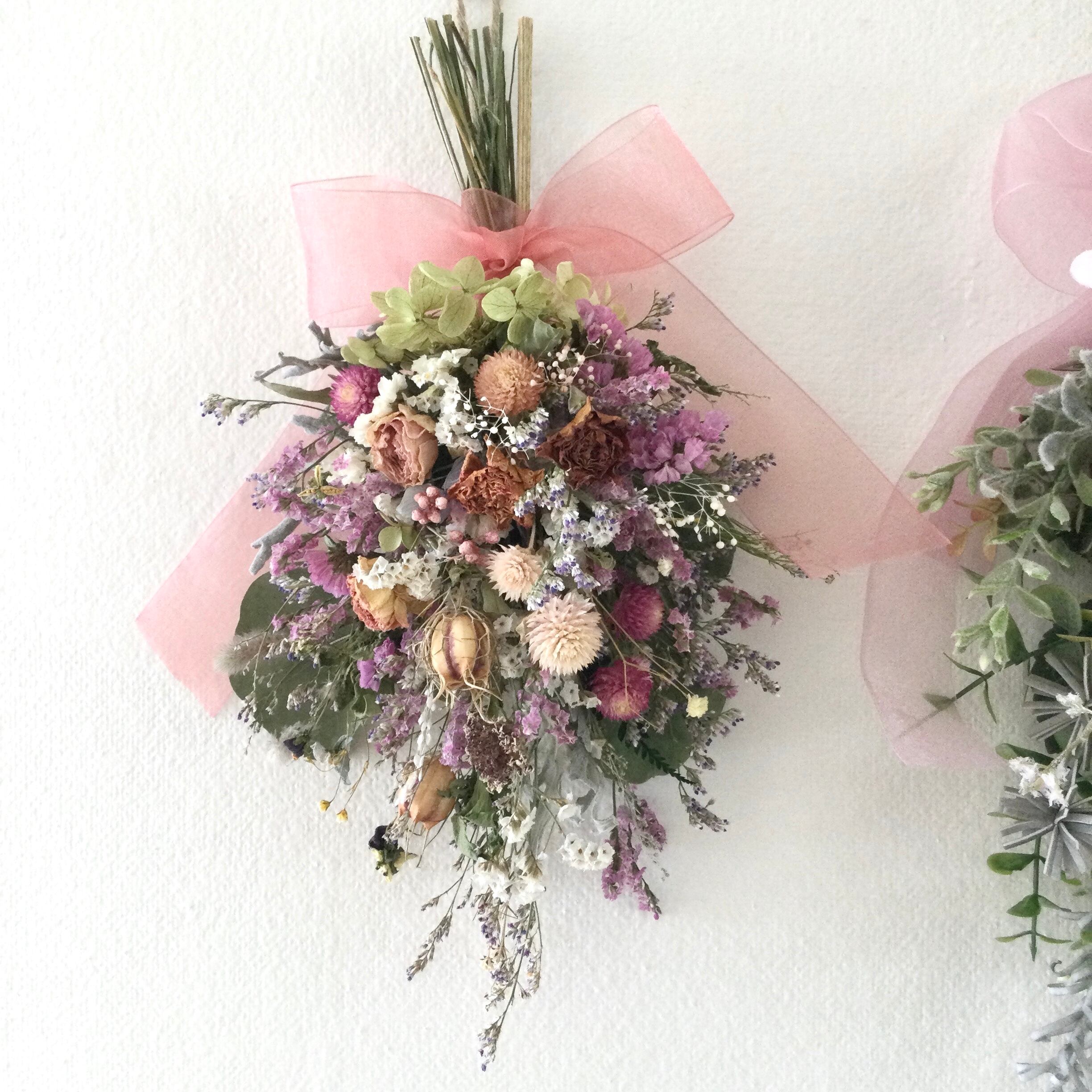 ローズと小花のスワッグ ドライフラワー 誕生日プレゼント 引っ越し祝い ギフト 夏ギフト