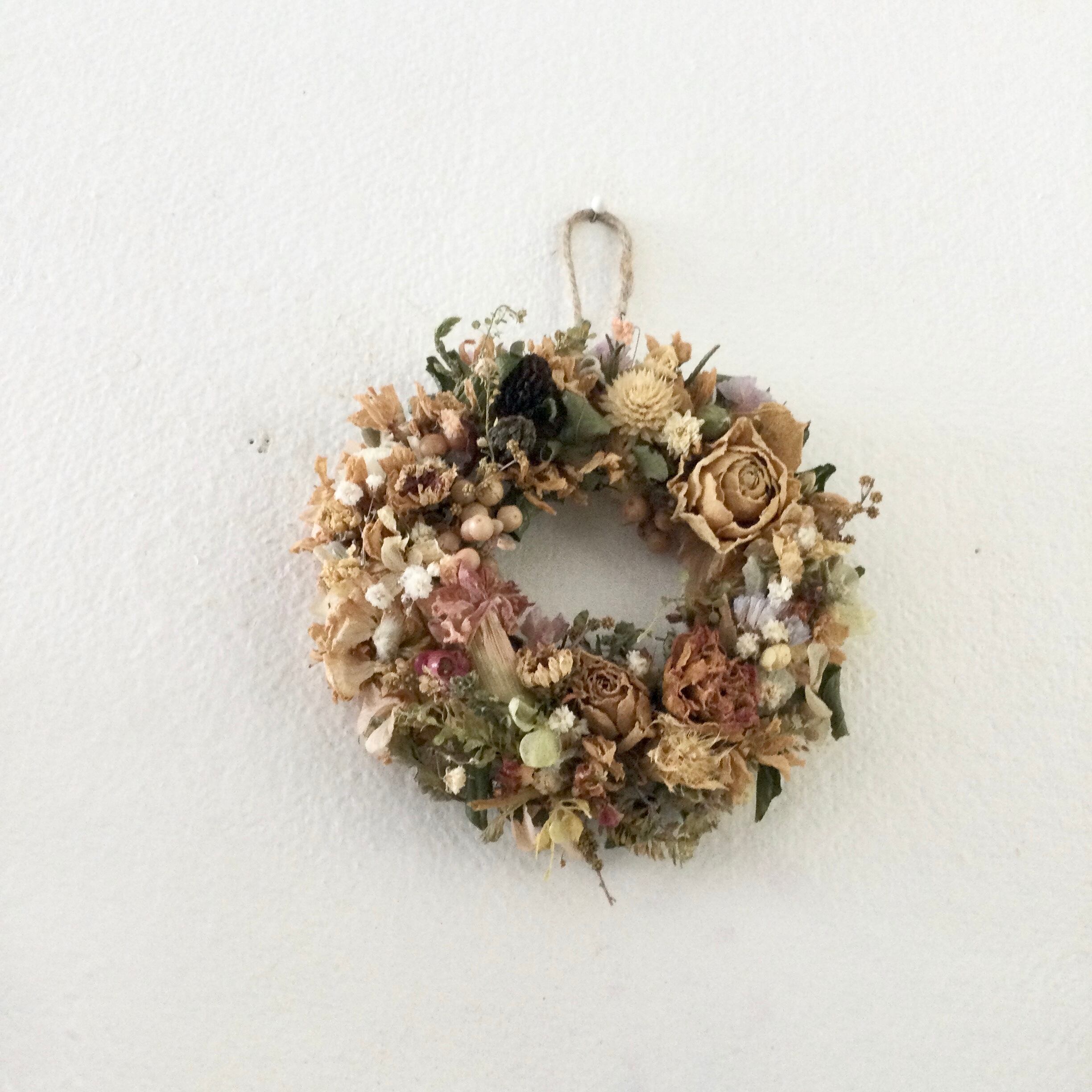 ローズと小花のミニリース アンティークカラー ドライフラワー 誕生日プレゼント 引っ越し祝い 夏 ギフト