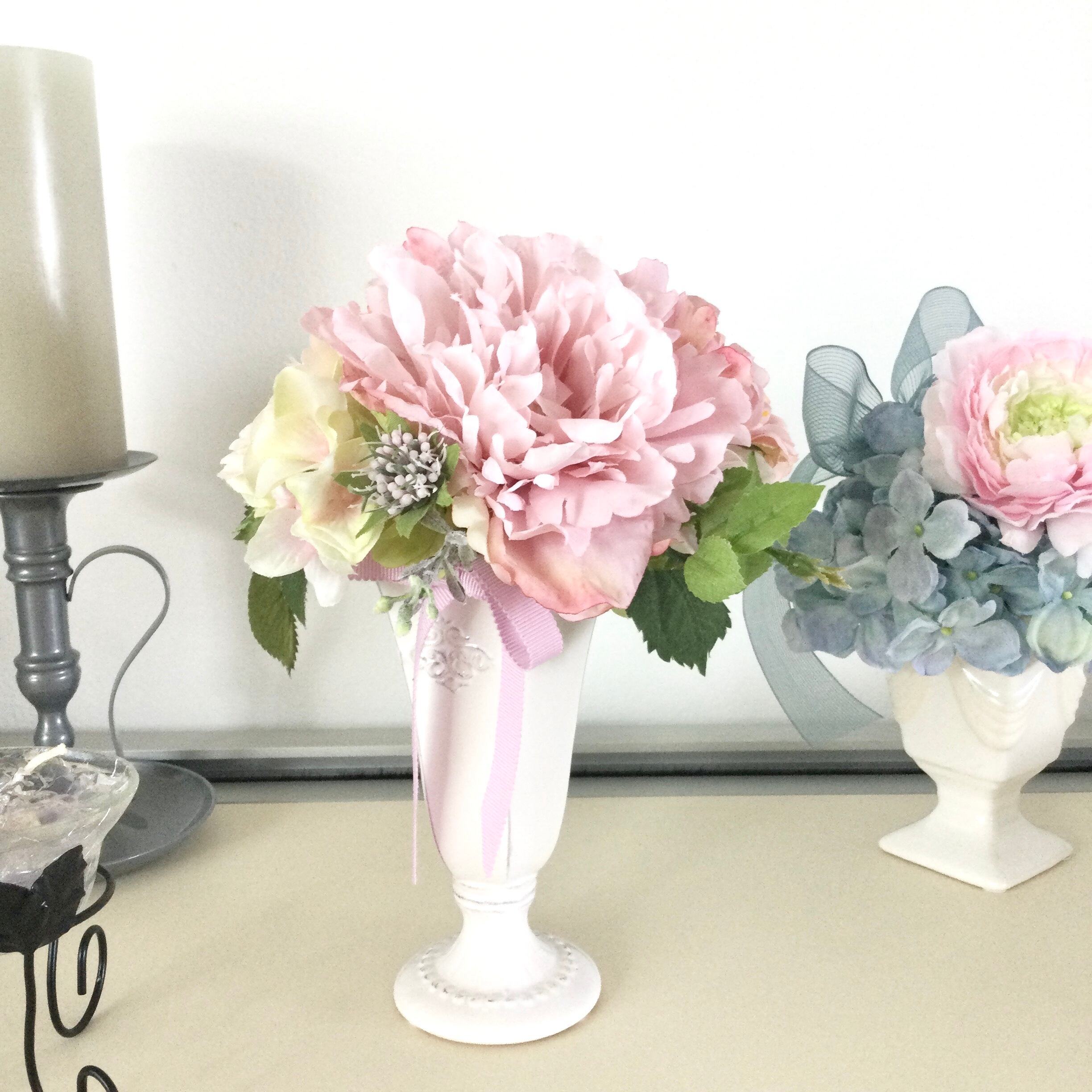 ピンクローズとピオニー アレンジメント アーティフィシャルフラワー 結婚祝い 誕生日プレゼント ギフト