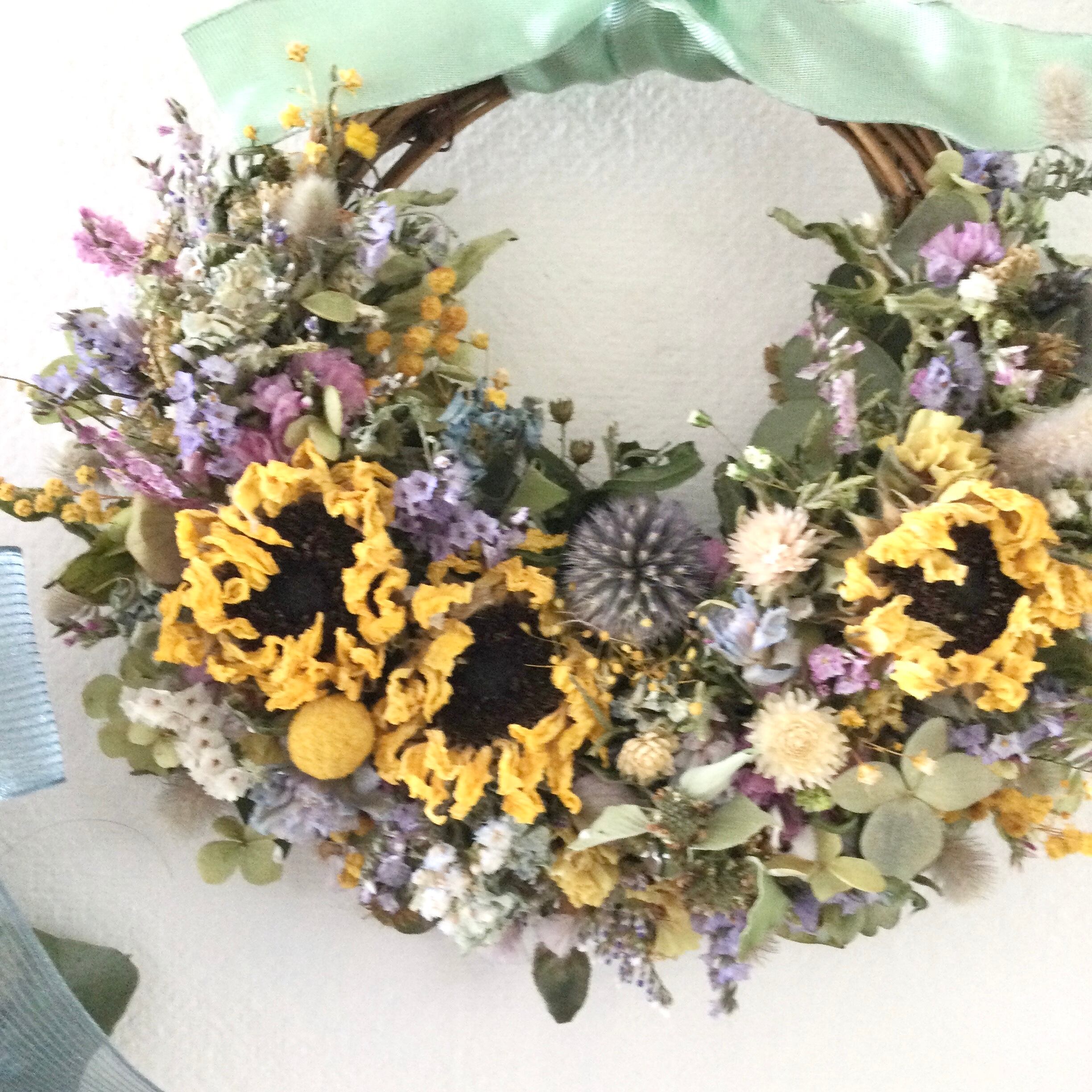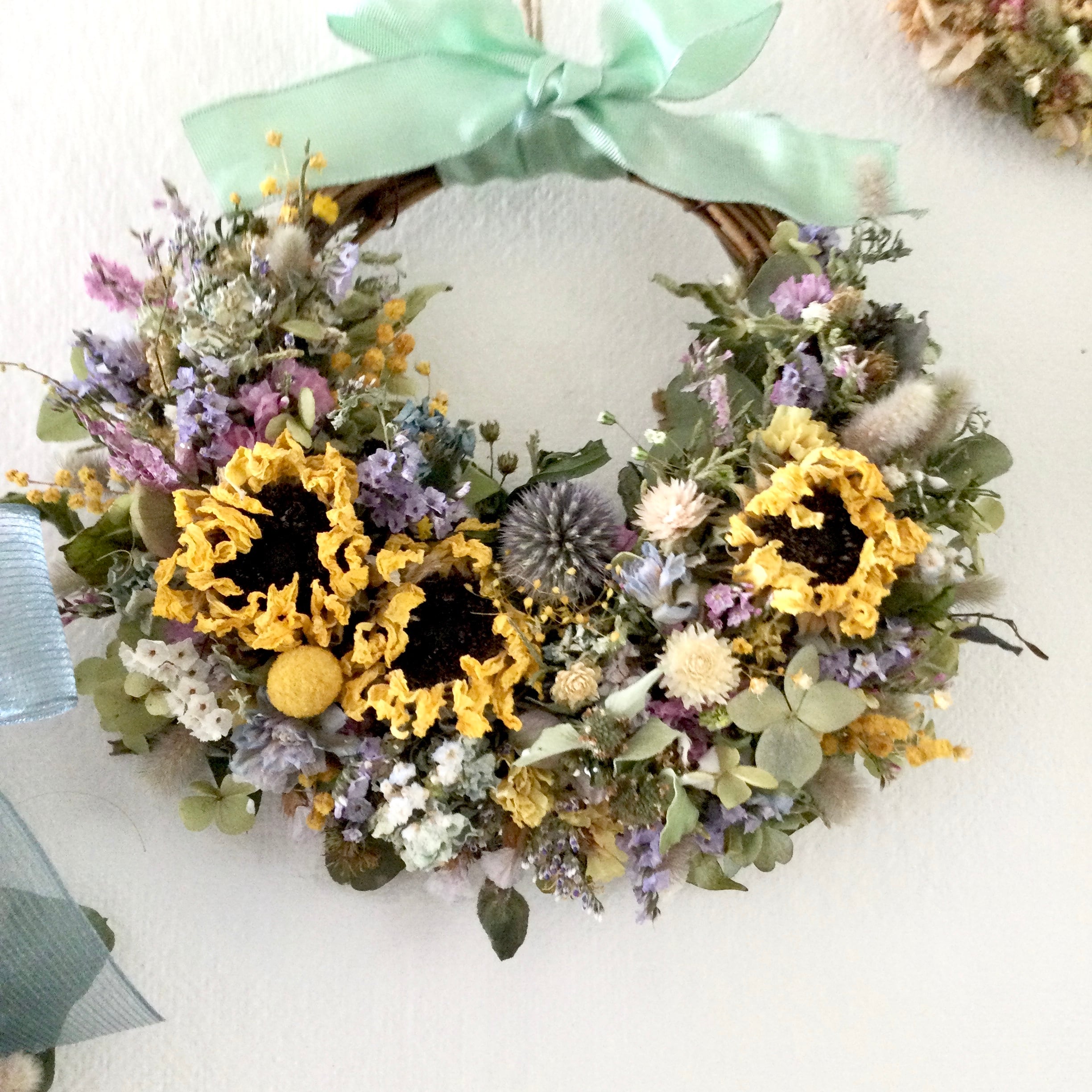ひまわりと小花のリース 22cm ドライフラワー 誕生日プレゼント 引っ越し祝い 夏 ギフト
