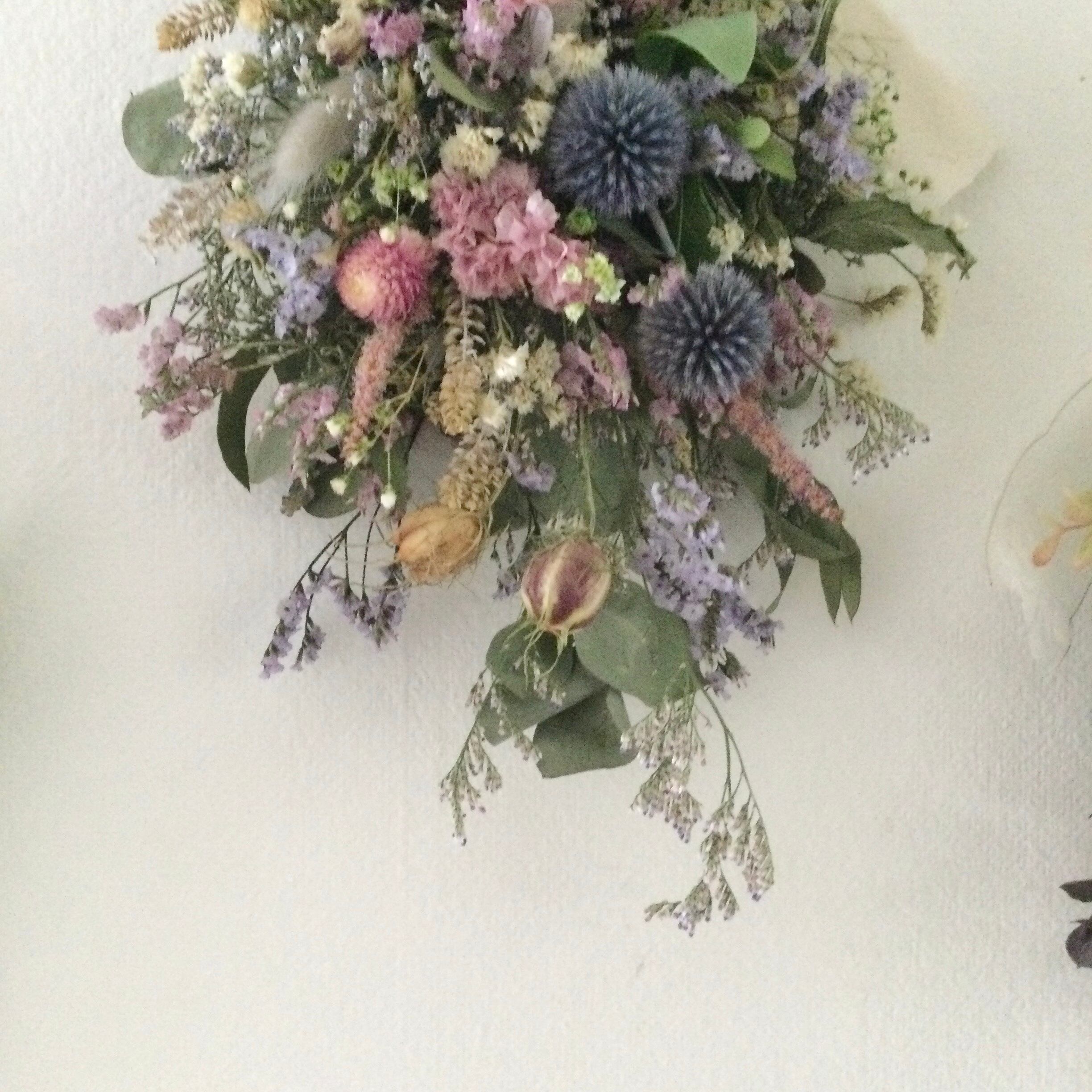 ・花材 ドライフラワー ユーカリ ルリ玉アザミ 千日紅 ヘリクリサム ニゲラ スターチス HBスターチス かすみ草 紫陽花 ナズナ ミニラグラス ラグラス マトリカリア セダム リーフ リボン等