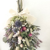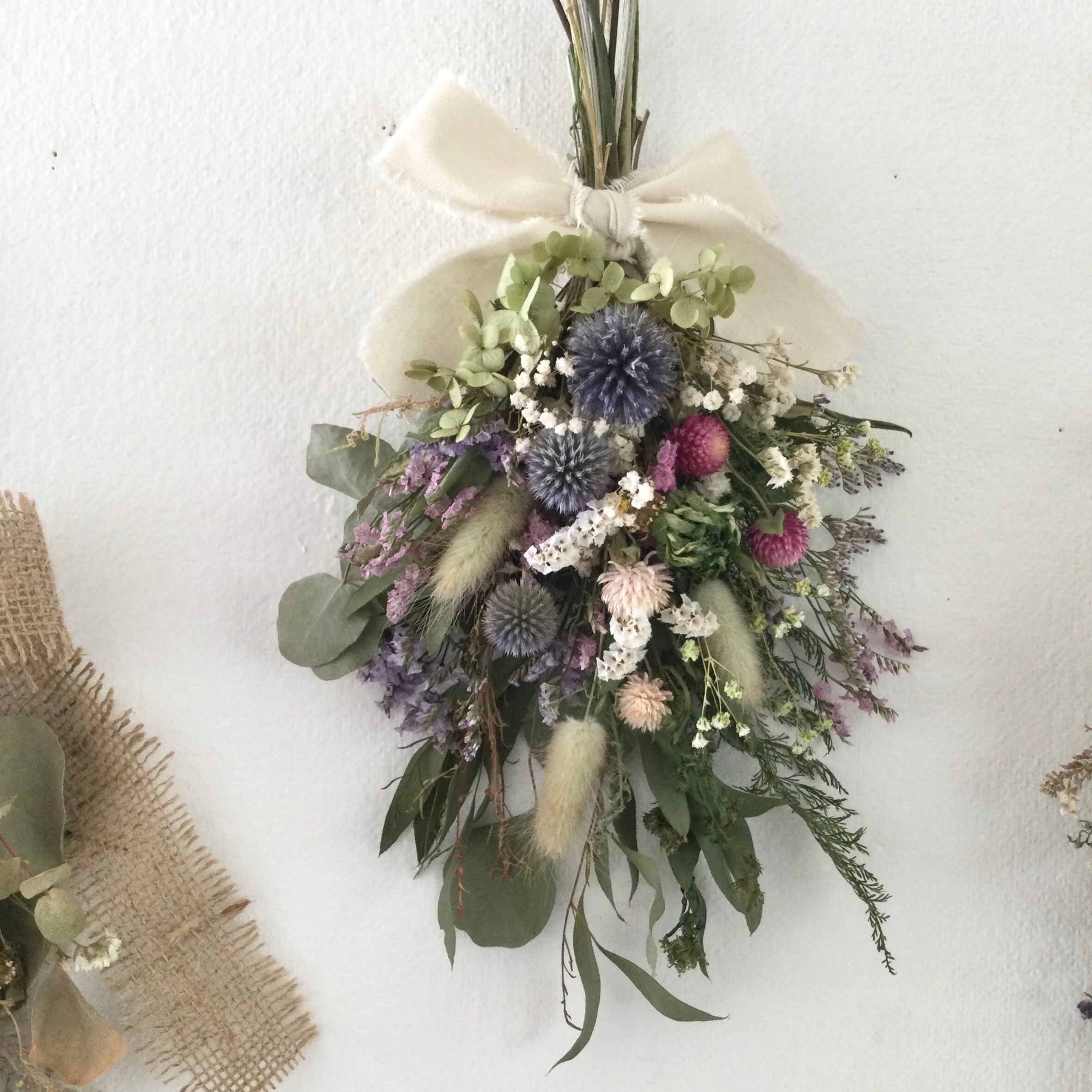 ルリ玉アザミと小花のナチュラルスワッグ ドライフラワー 誕生日プレゼント 引っ越し祝い ギフト