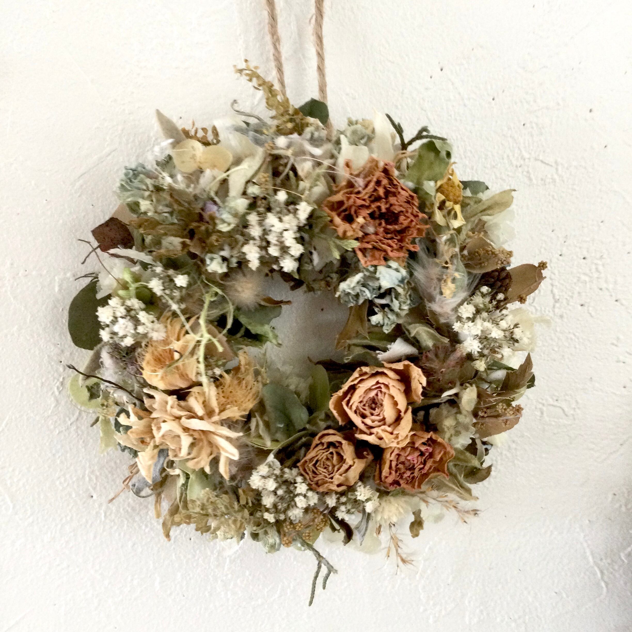 アンティークカラーのお花を集めて可愛いリースになりました。