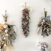 ユーカリ ローズと小花の縦型スワッグ ドライフラワー 誕生日プレゼント 引っ越し祝い 秋 ギフト