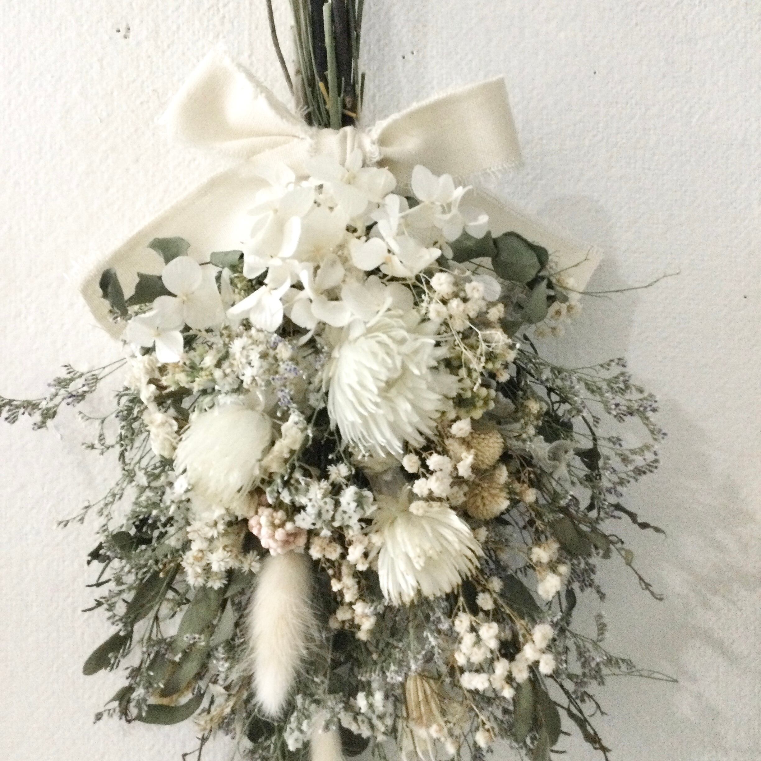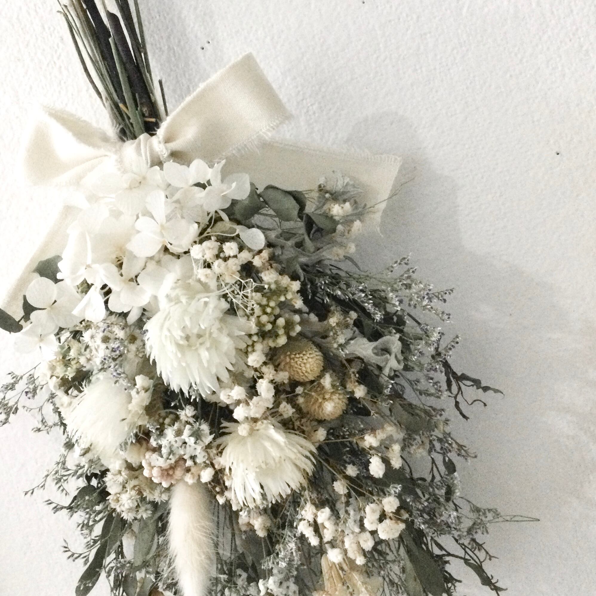 シルバーデージーと小花のスワッグ ナチュラルホワイト ドライフラワー 誕生日プレゼント 引っ越し祝い 秋 ギフト