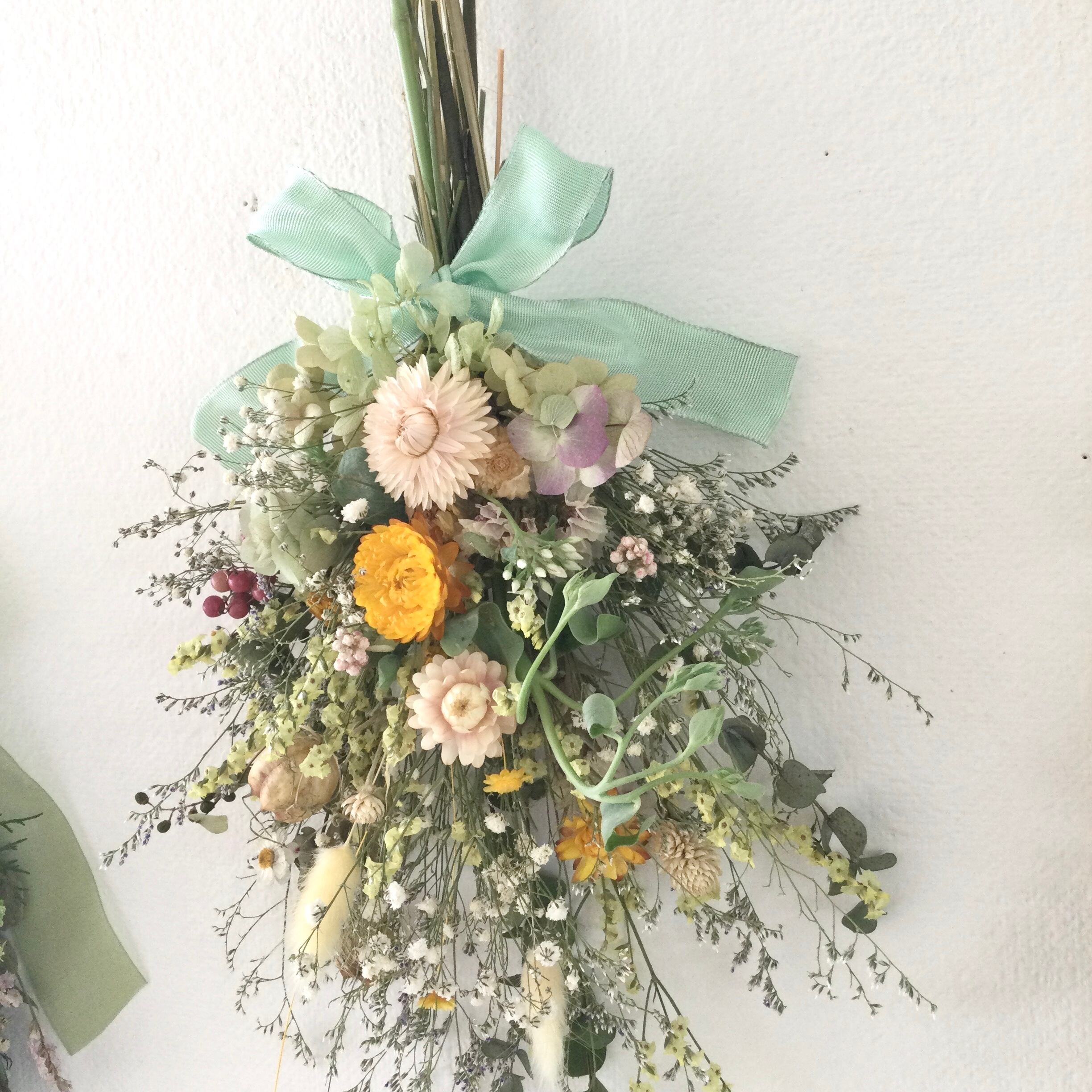 ヘリクリサム 小花のナチュラルスワッグ イエロー ドライフラワー 誕生日プレゼント 引っ越し祝い 秋 ギフト