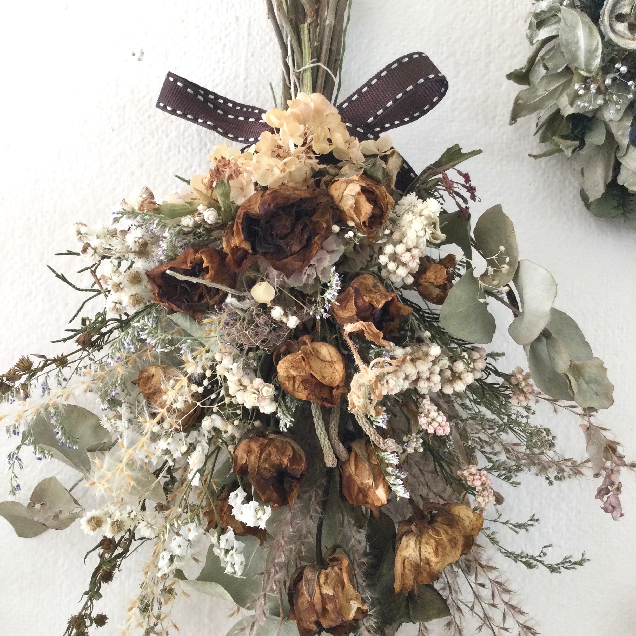 アンティークカラー ローズと小花のナチュラルスワッグ ドライフラワー 誕生日プレゼント 引っ越し祝い 秋 ギフト