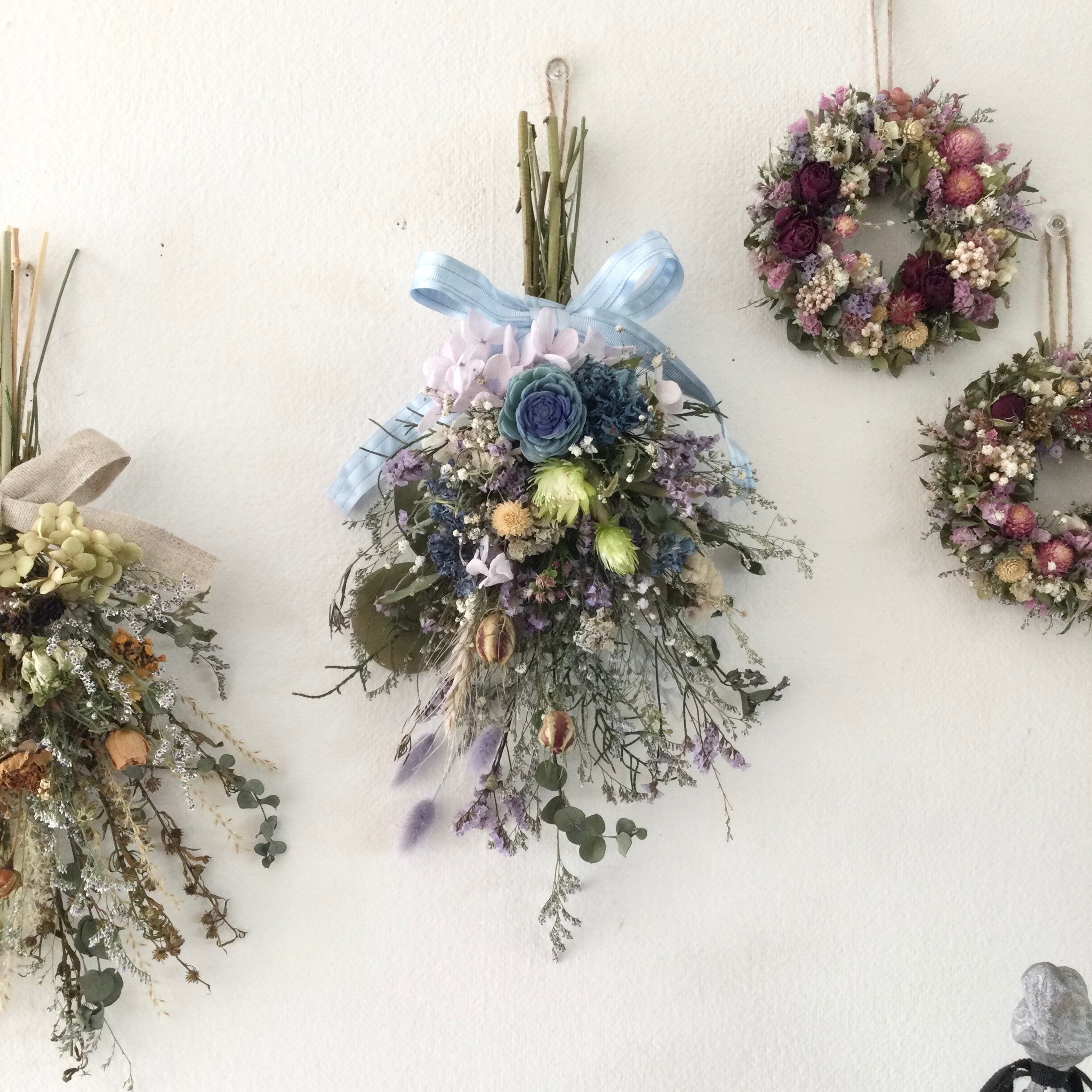 ソラローズと小花のスワッグ ブルー ドライフラワー 誕生日プレゼント 引っ越し祝い 秋 ギフト