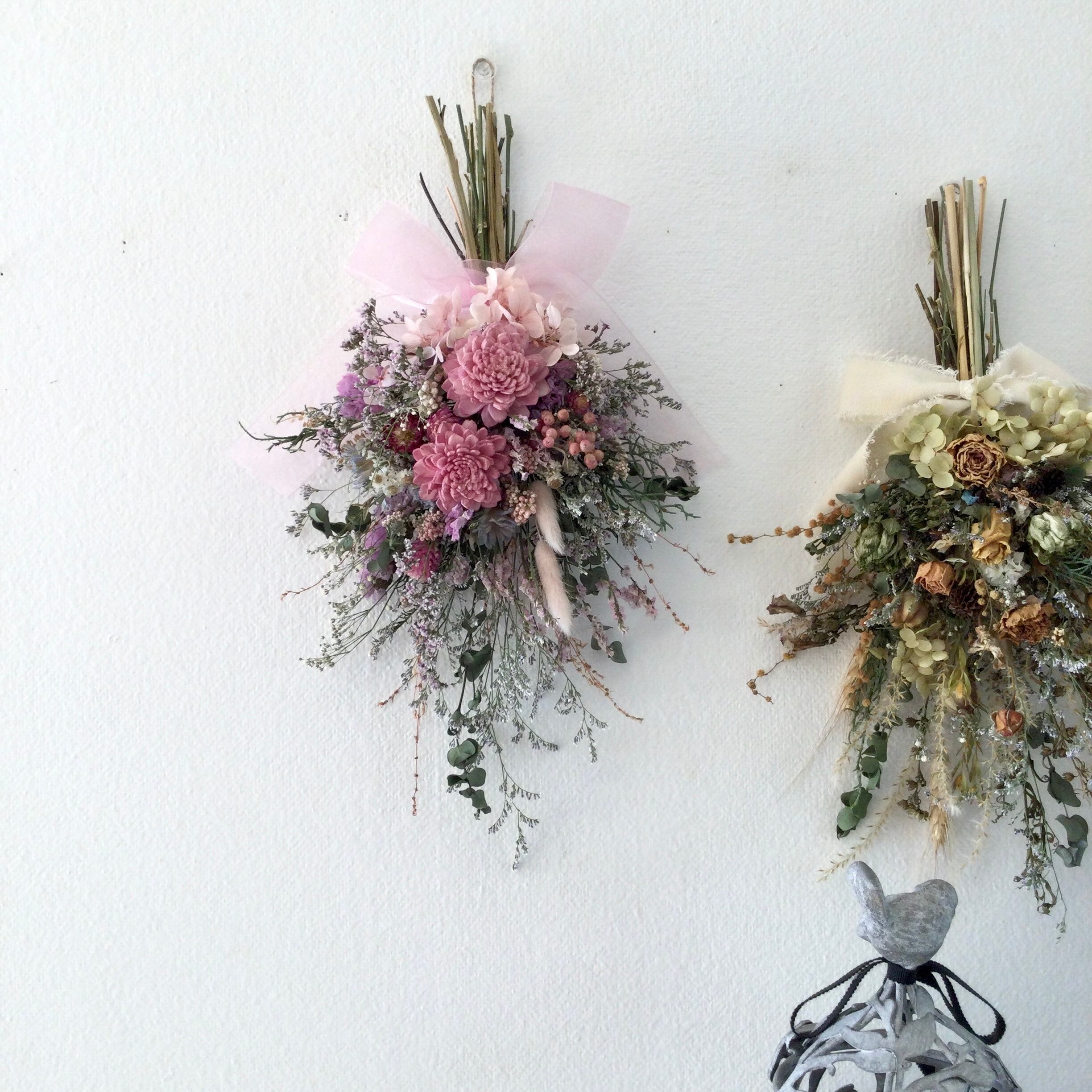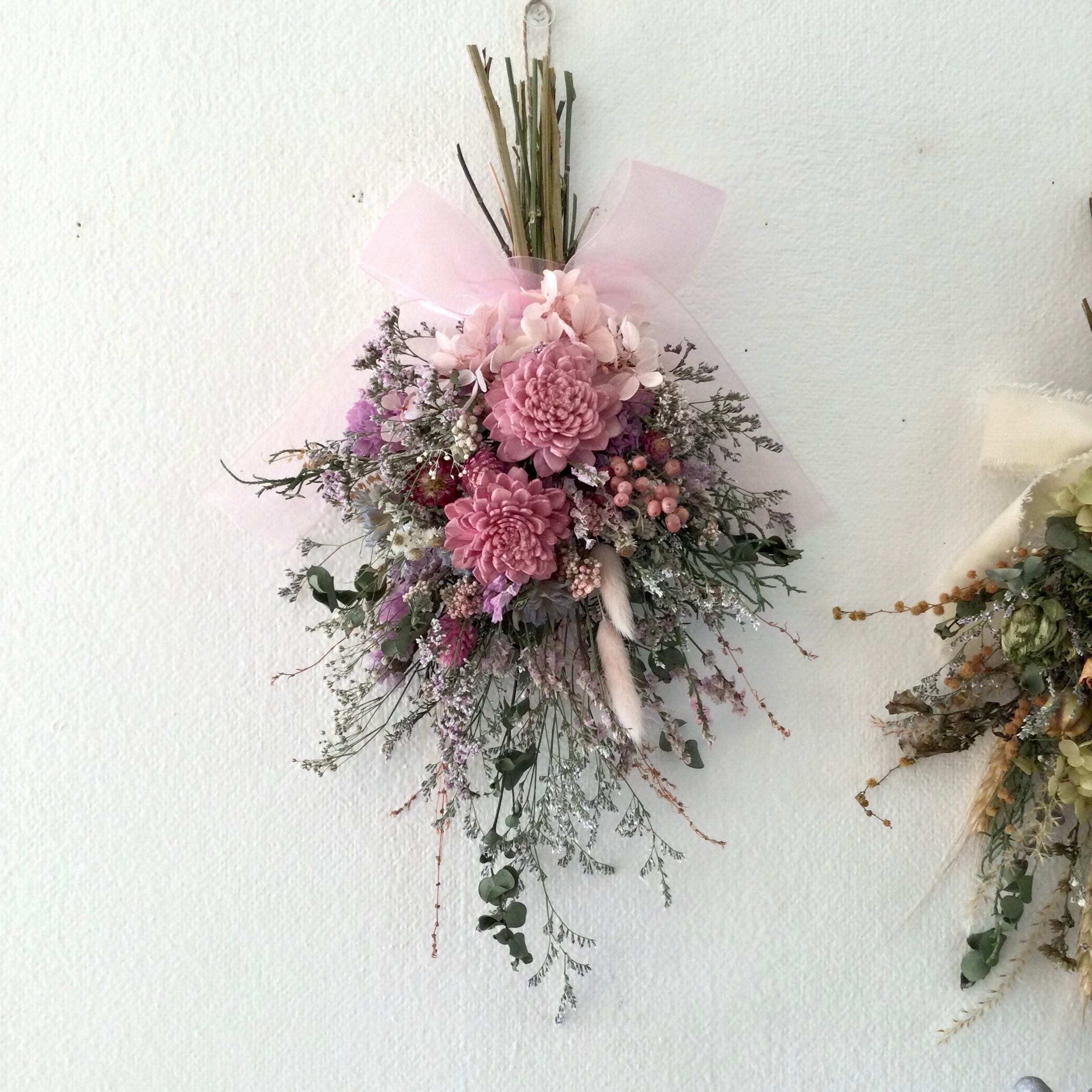 ソラダリアと小花のスワッグ ピンク ドライフラワー 誕生日プレゼント 引っ越し祝い ウインタースワッグ ギフト
