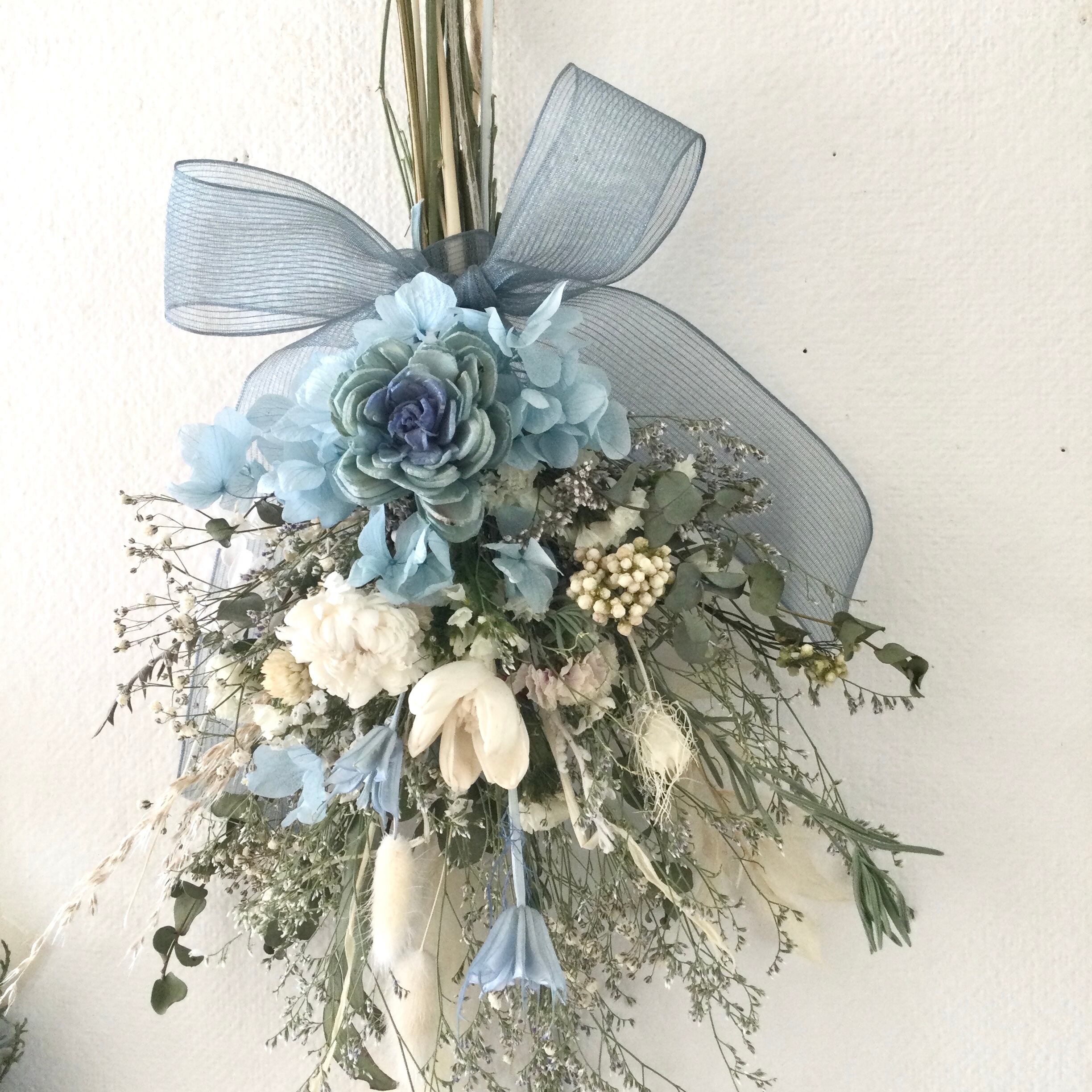 ソラローズと小花のナチュラルスワッグ ブルー ドライフラワー 誕生日プレゼント 引っ越し祝い クリスマス ギフト