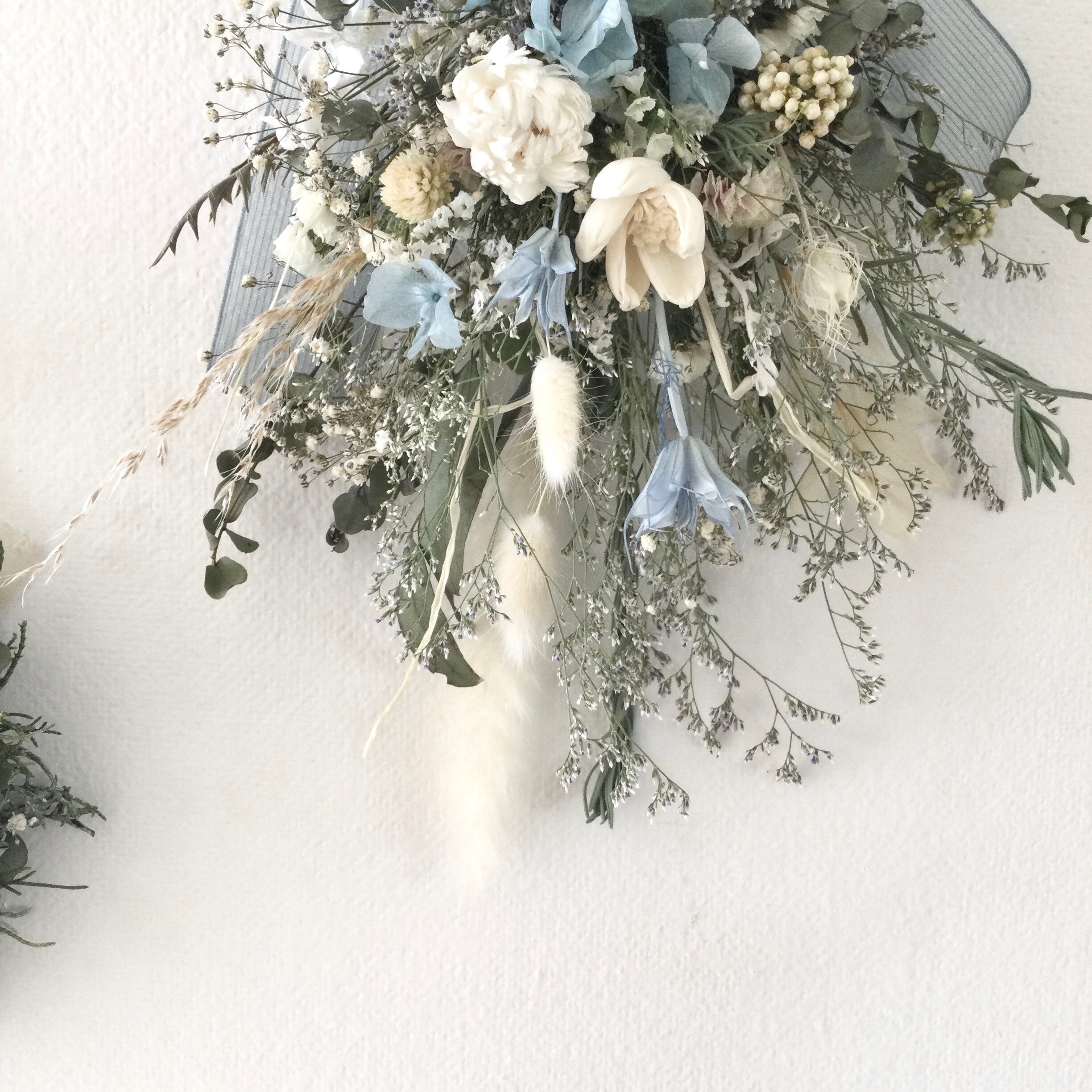 ・花材 ドライフラワー ユーカリ ソラローズ かすみ草 ダスティーミラー ラグラス 千日紅 ハハコソウ ニゲラオリエンタレス 紫陽花 ヘリクリサム ソラブロッサム ライスフラワー ホワイトリーフ テールリード ラベンダーリーフ ブルーファンタジア リボン等