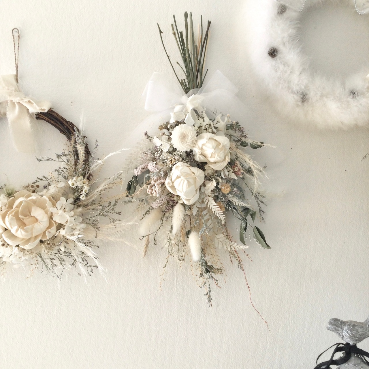 ピオニーと小花のスワッグ ナチュラルホワイト ドライフラワー 誕生日プレゼント 引っ越し祝い ウインタースワッグ ブーケ クリスマス ギフト