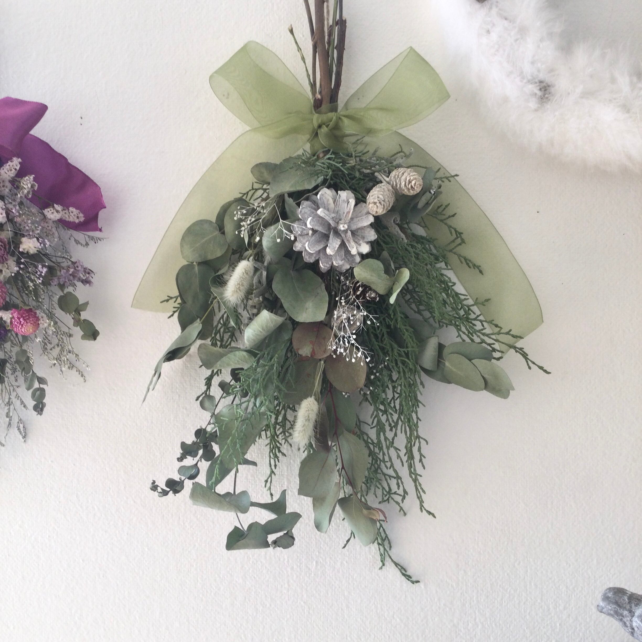 ユーカリ グリーンと木の実のナチュラルスワッグ ドライフラワー 誕生日プレゼント 引っ越し祝い クリスマス ギフト