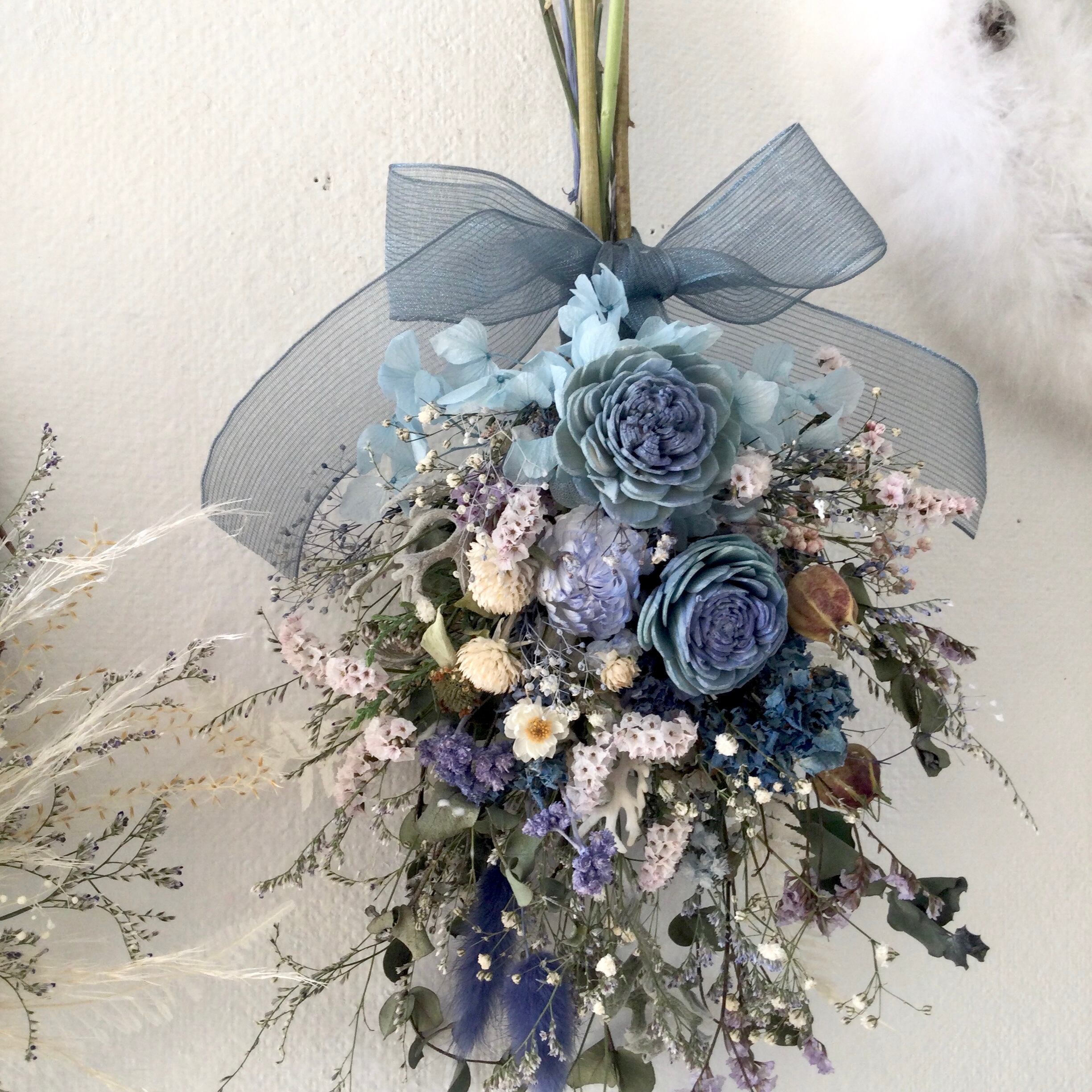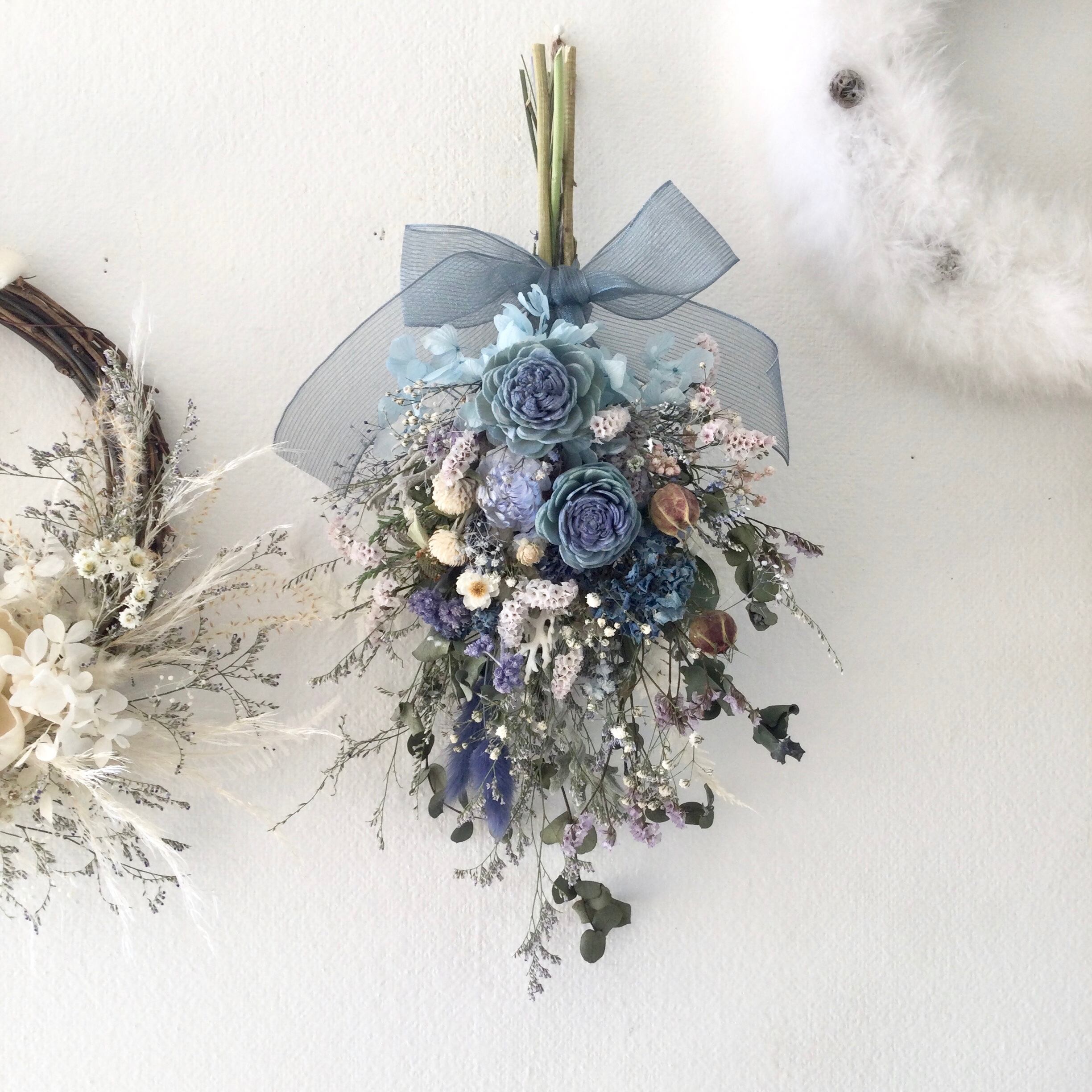 ソラローズと小花のスワッグ ブルー ドライフラワー 誕生日プレゼント 引っ越し祝い クリスマス ギフト