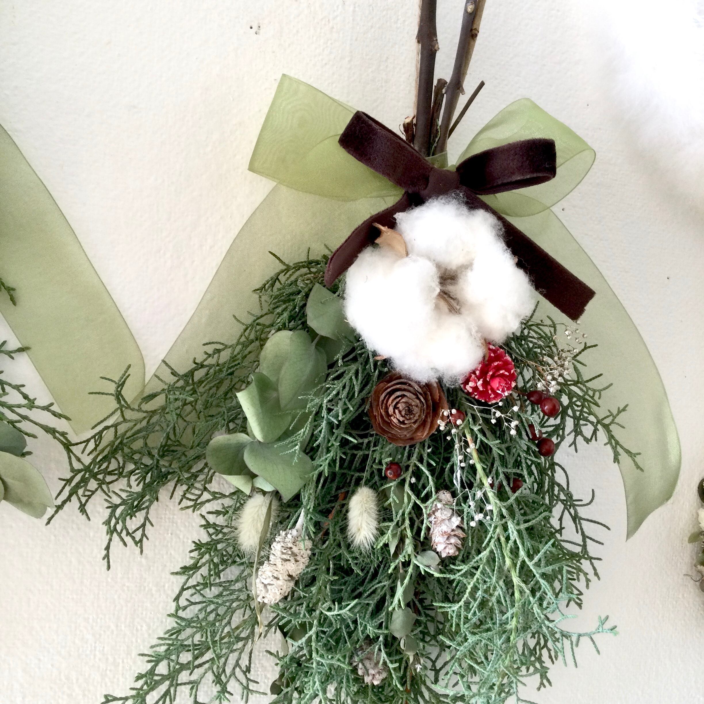 ユーカリ グリーンと木の実のナチュラルスワッグ ドライフラワー 誕生日プレゼント 引っ越し祝い クリスマス ギフト