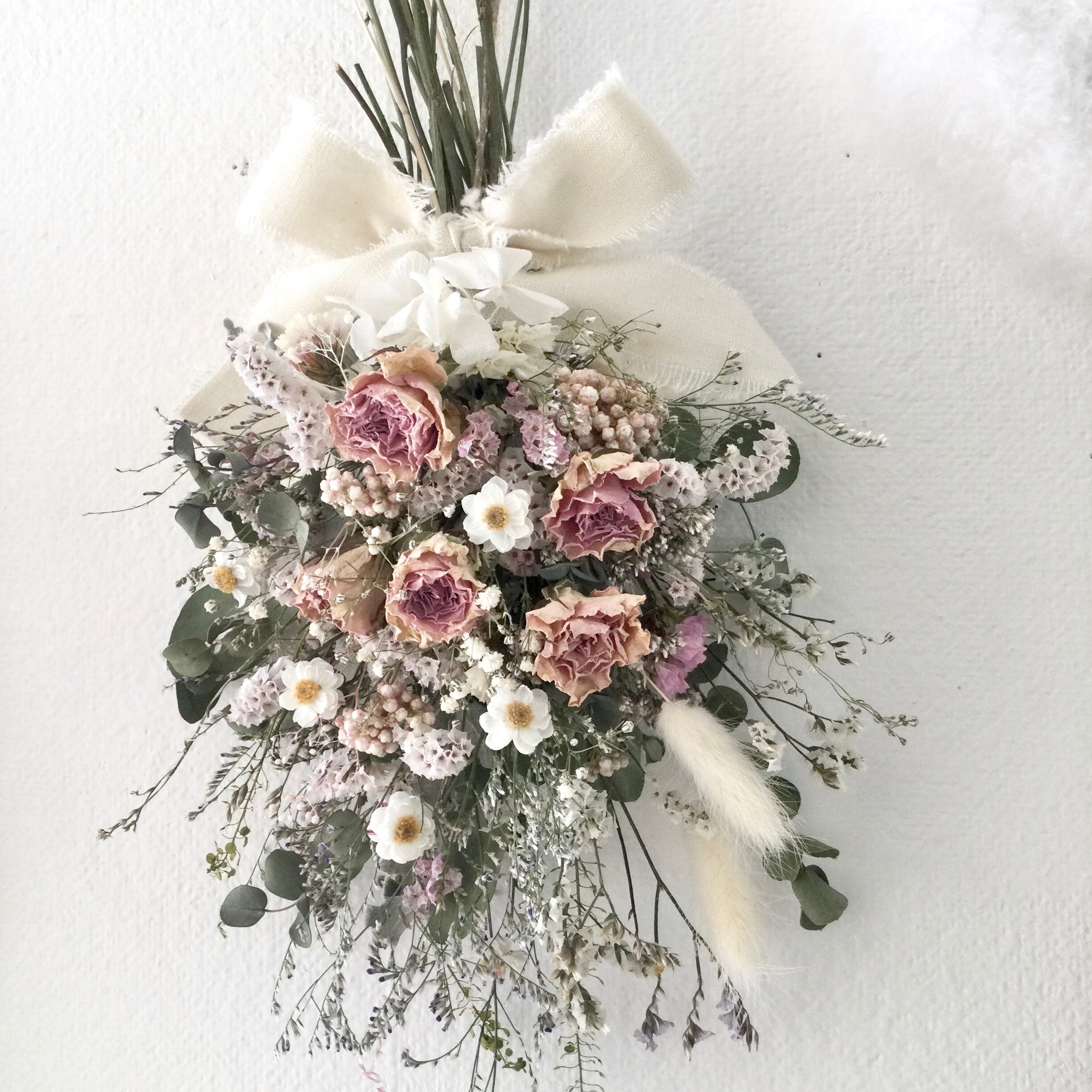 ローズと小花のスワッグ ピンク ドライフラワー 誕生日プレゼント 引っ越し祝い クリスマス ギフト
