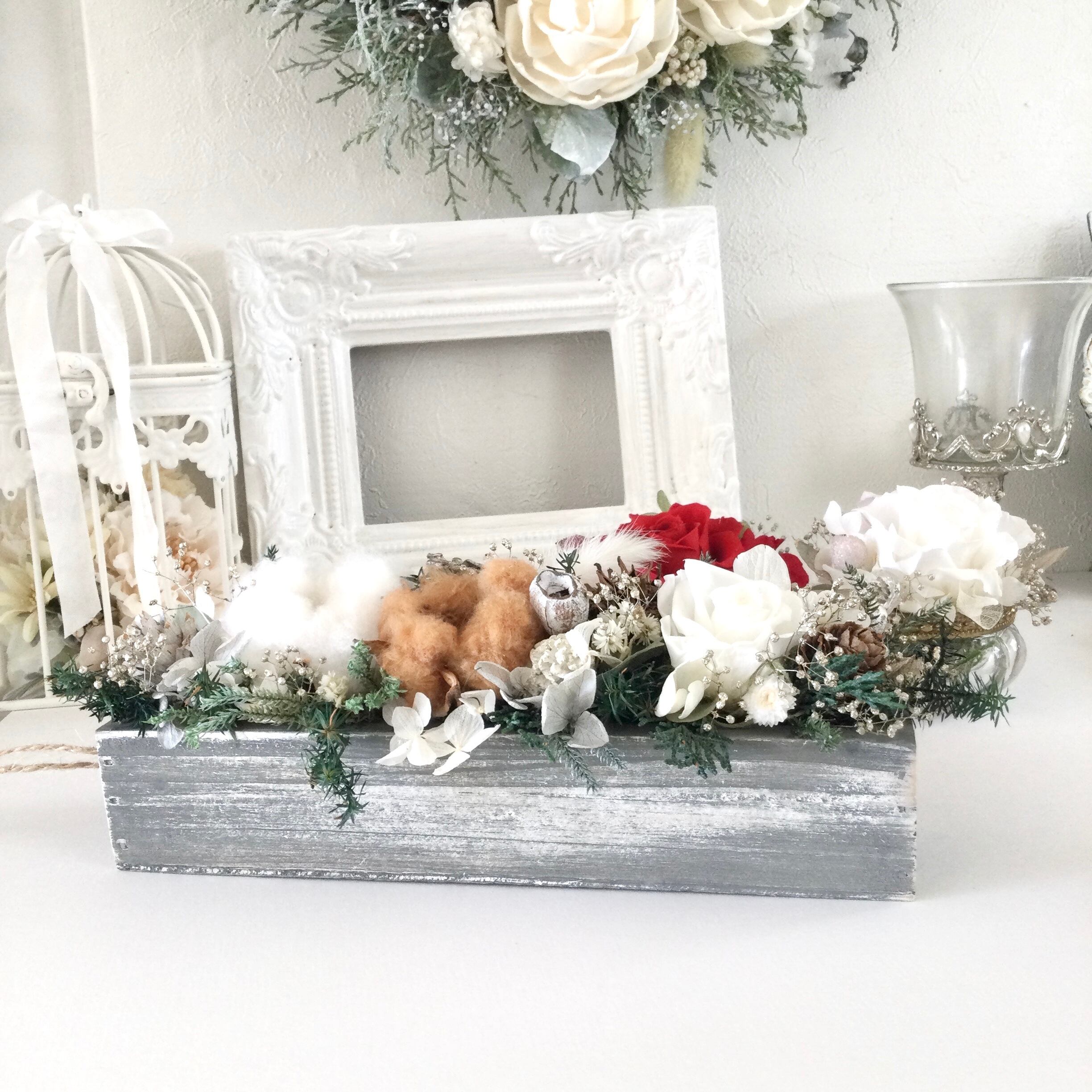 コットンフラワーと木の実 ホワイトローズ クリスマスボックスアレンジメント ドライフラワー プリザーブドフラワー 誕生日プレゼント 引っ越し祝い クリスマス ギフト