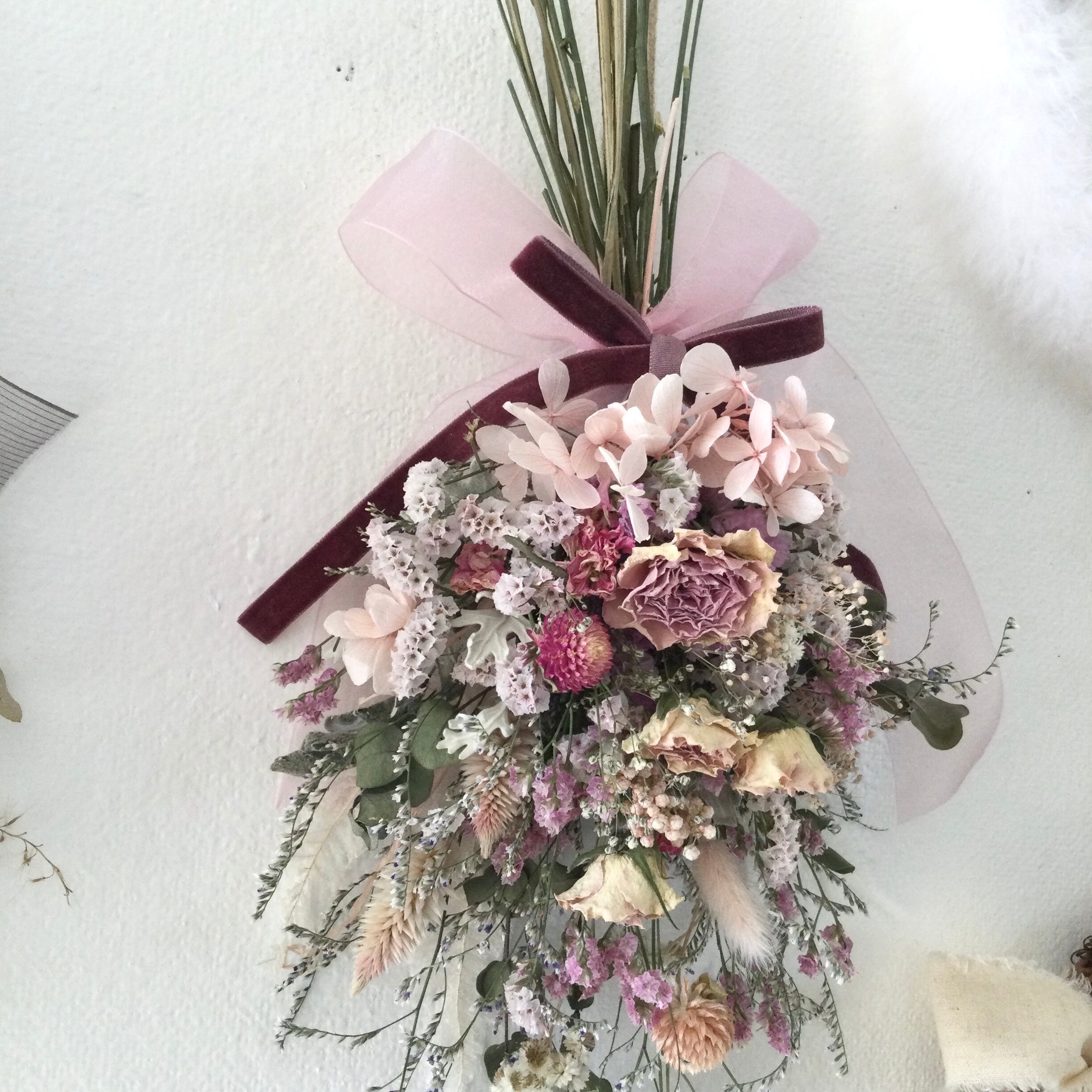 ローズと小花のスワッグ ピンク ドライフラワー 誕生日プレゼント 引っ越し祝い クリスマス ギフト