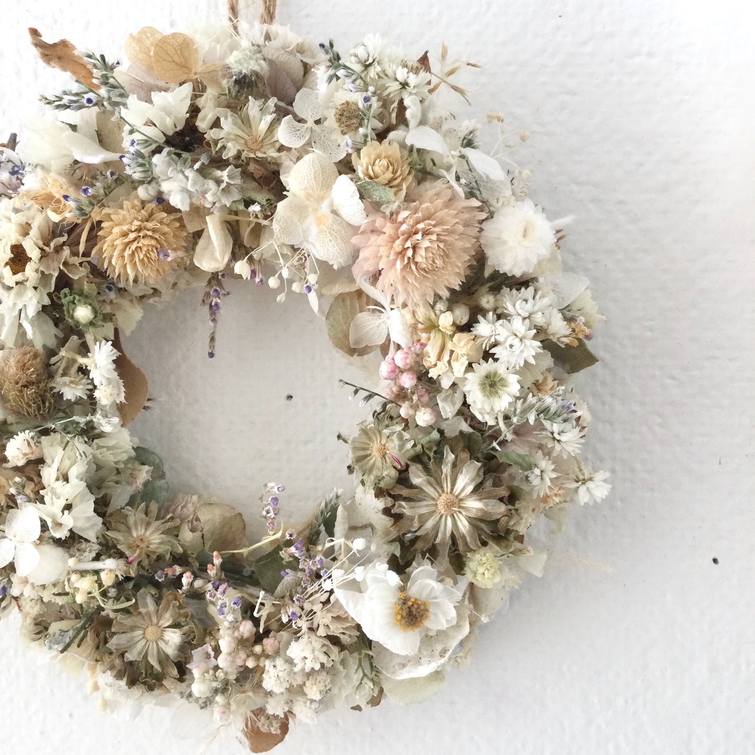 ナチュラルカラーの小さなお花をたくさん使ったリースです。