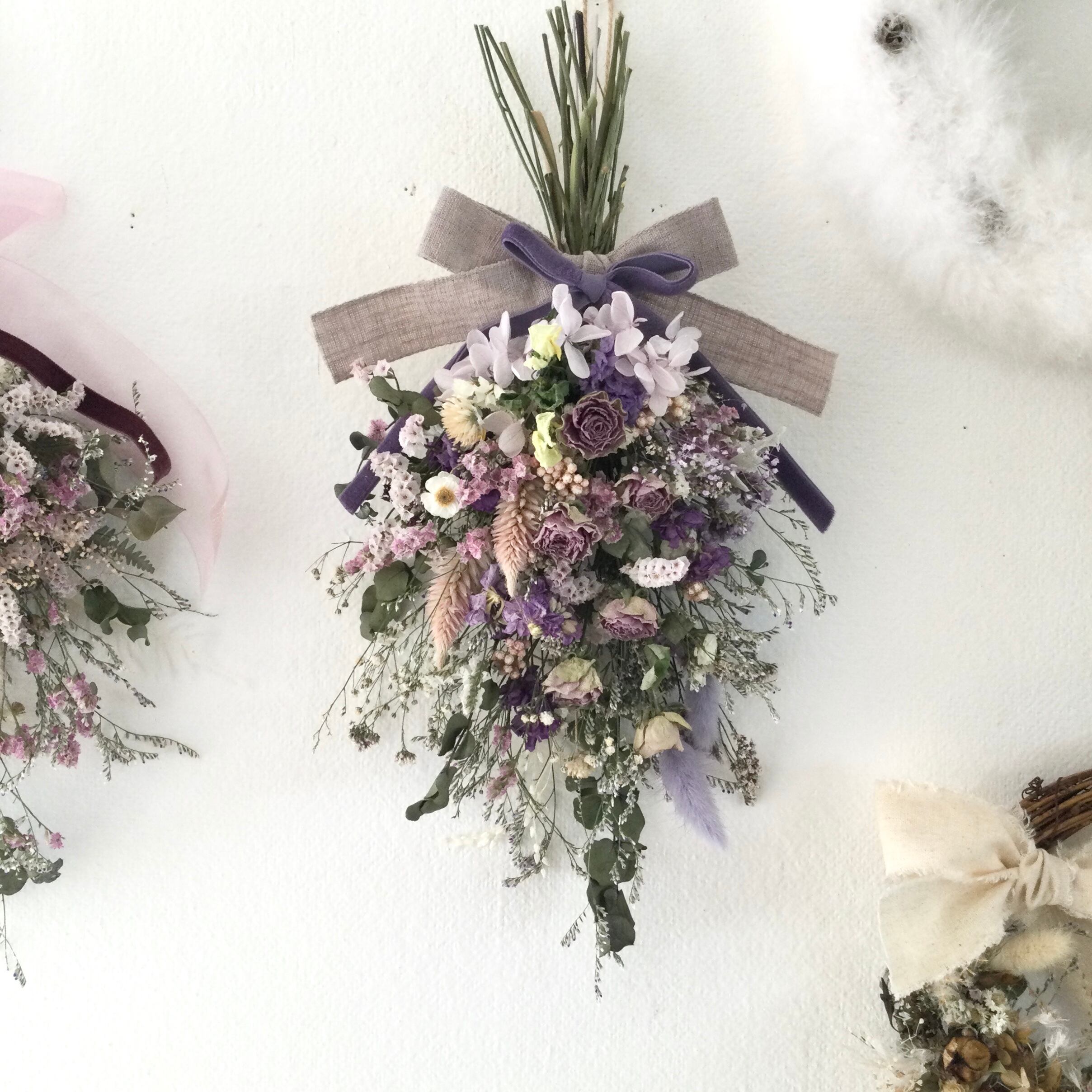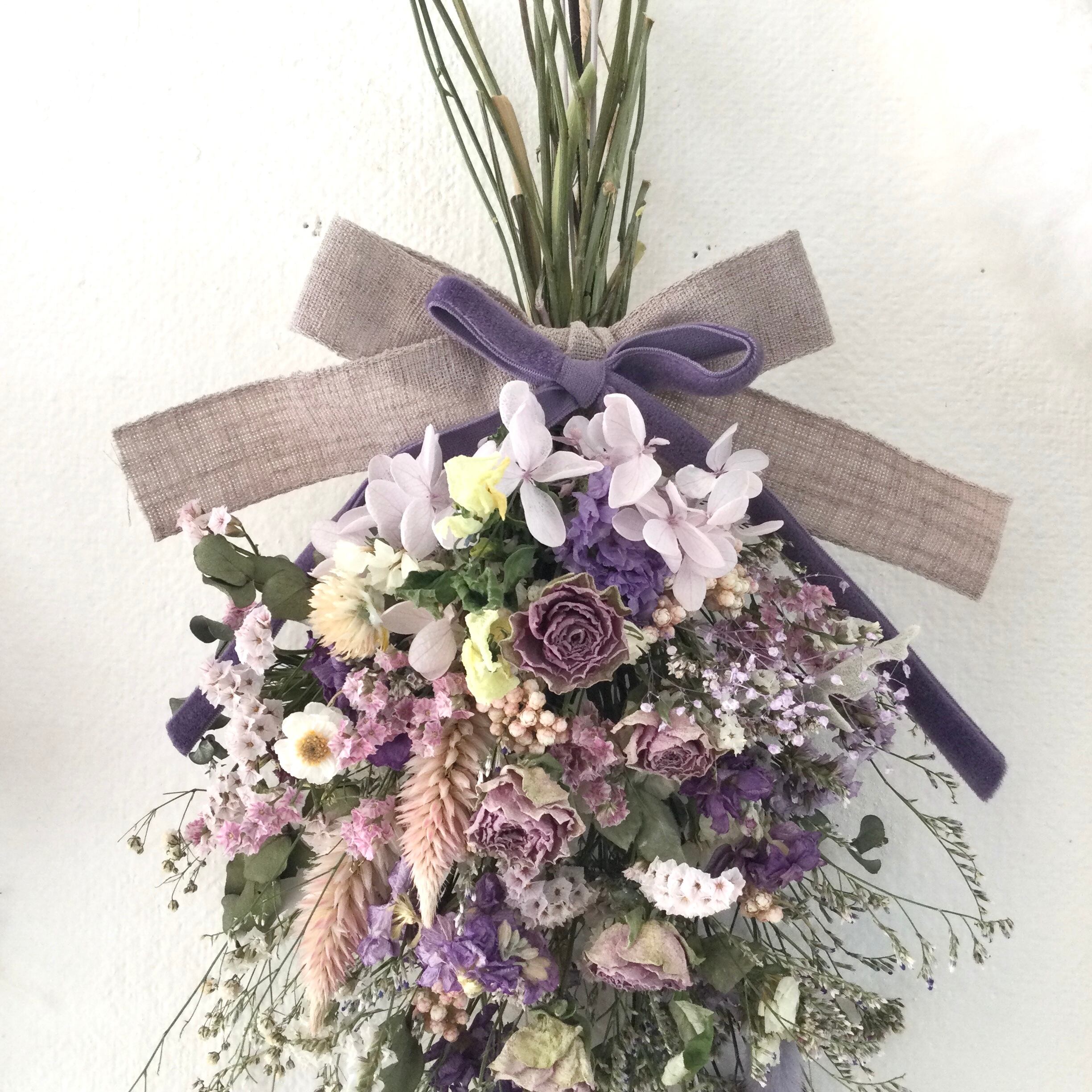 ローズと小花のスワッグ パープル ドライフラワー 誕生日プレゼント 引っ越し祝い クリスマス ギフト