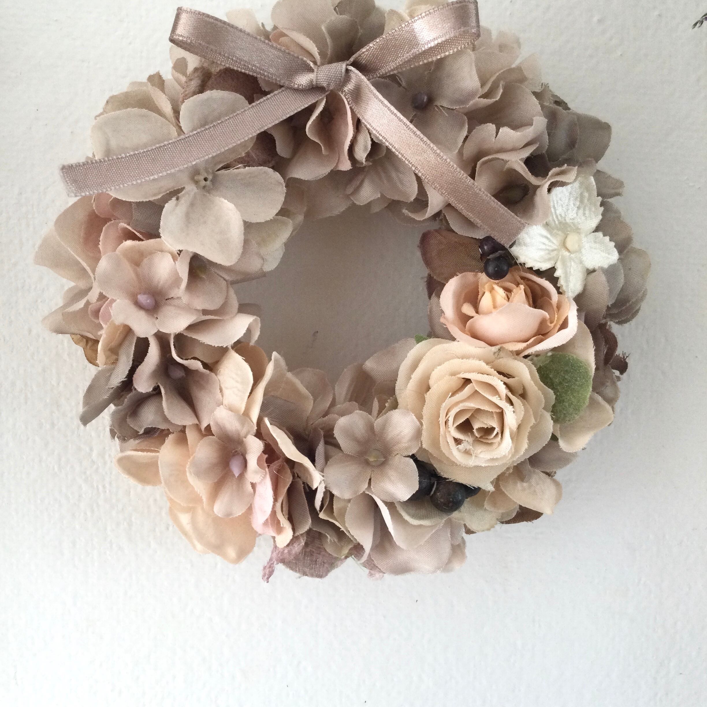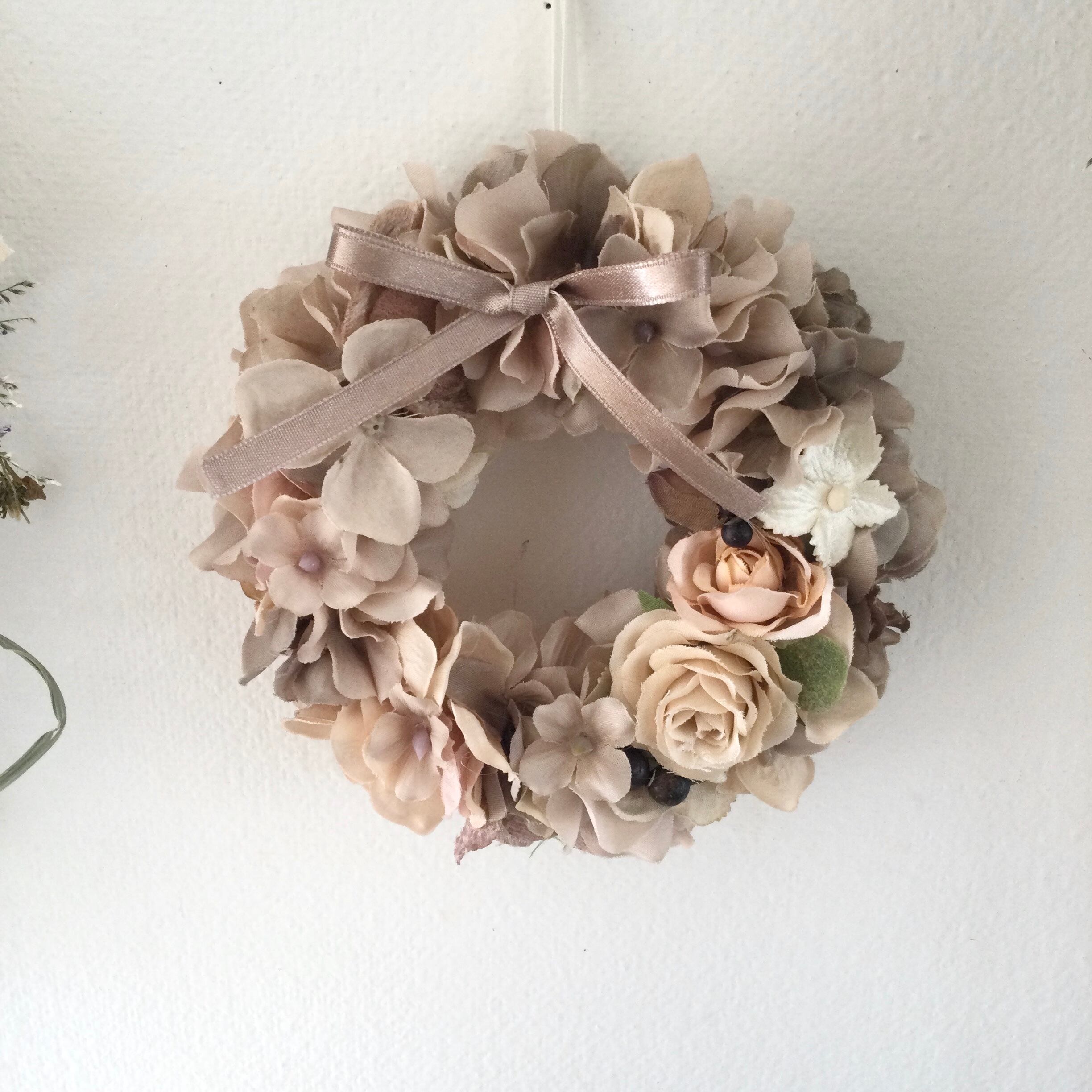 ベージュ ブラウン系のローズと紫陽花のミニリースです。