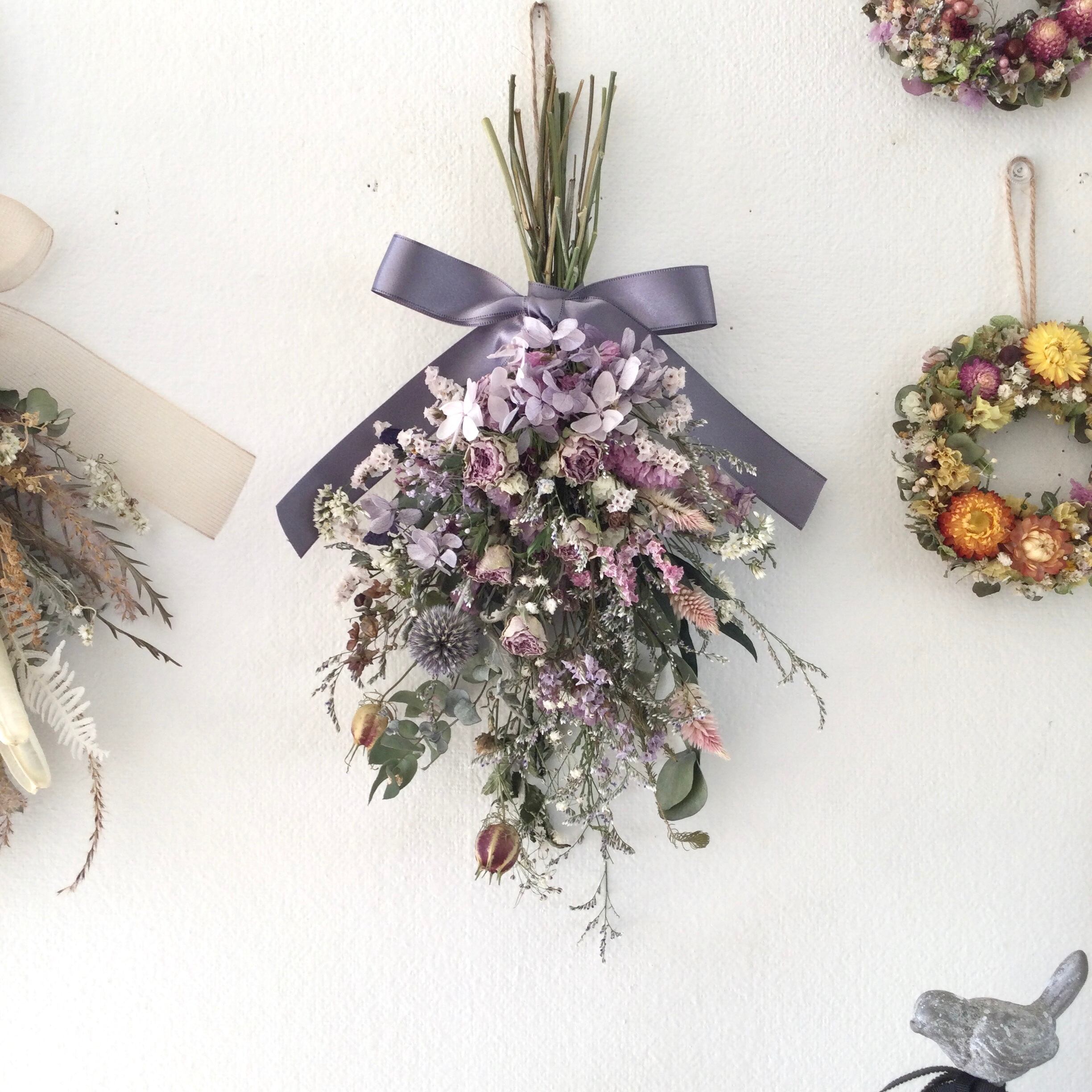 ローズと小花のスワッグ パープル ドライフラワー 誕生日プレゼント 引っ越し祝い クリスマス ギフト