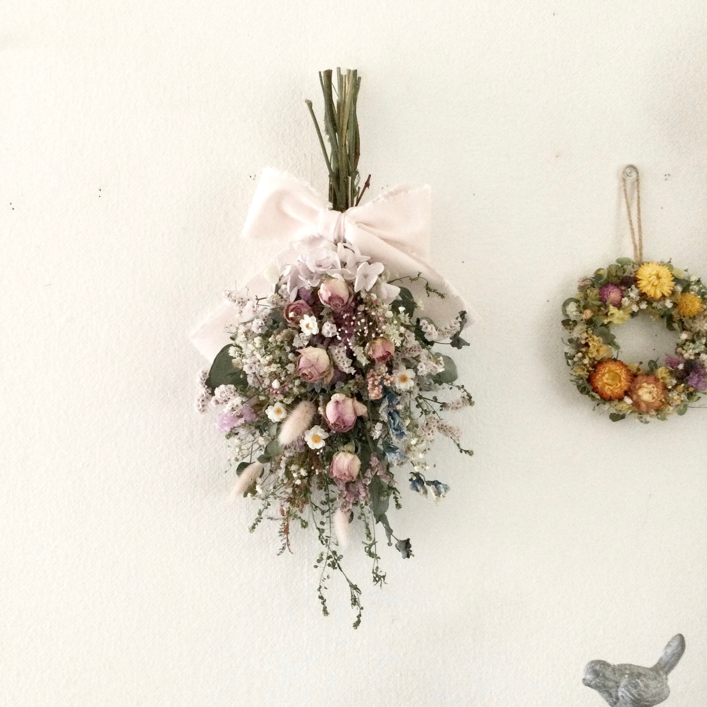 ローズと小花のナチュラルスワッグ ピンク ドライフラワー 誕生日プレゼント 引っ越し祝い 記念日 ギフト